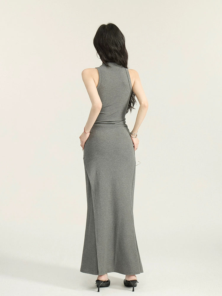 Ärmelloses Slim Fit Maxikleid mit Weste