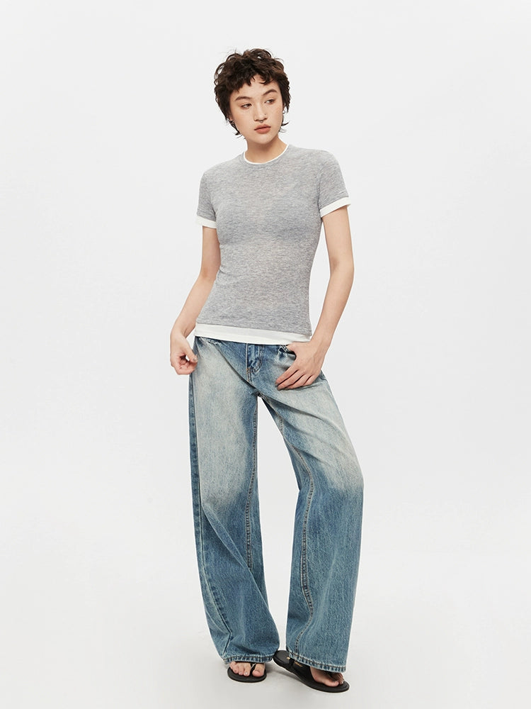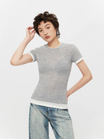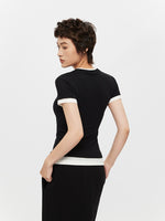 Slim Fit Kontrastbesatz Kurzarm Rollkragen