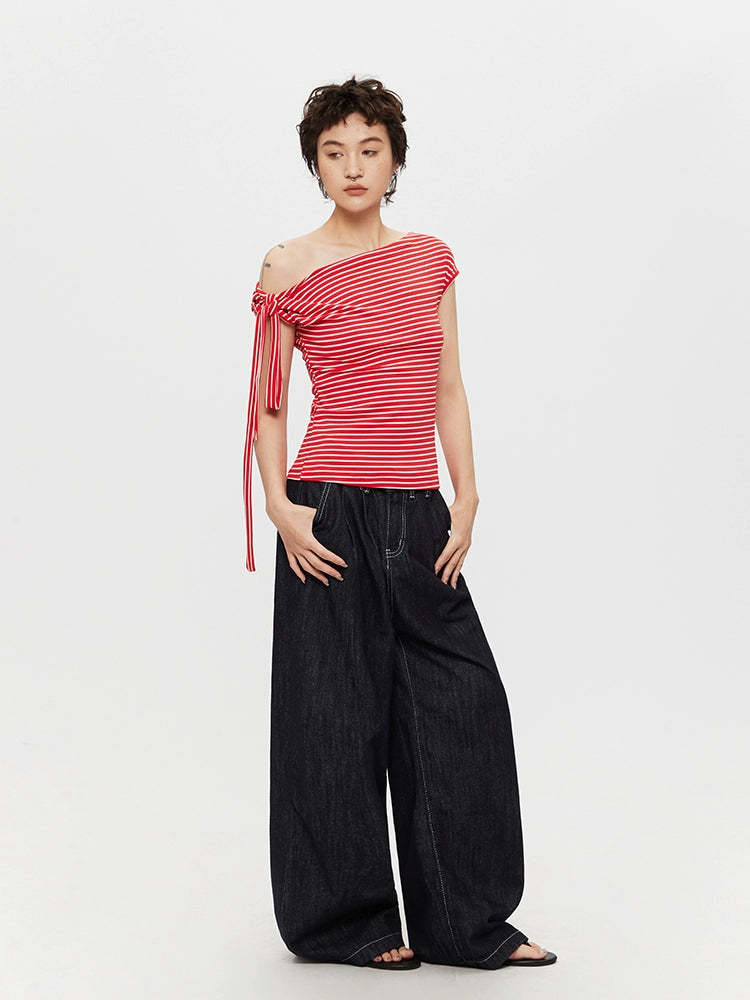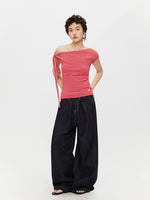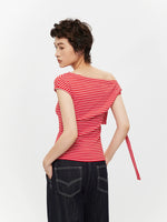 Gestreiftes Off-Shoulder Kurzarm-Top