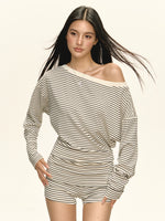Gestreiftes Off-Shoulder-Top und Shorts-Set