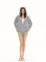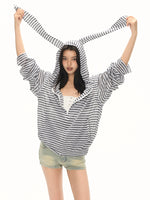 Gestreifter Kaninchenohren Kapuzenlangarmshirt