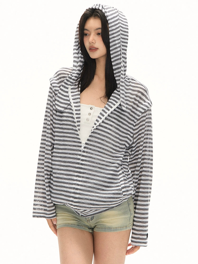 - Gestreifte Kapuzenjacke, die einen neuen Stil von Vitalität und Mode. einführt