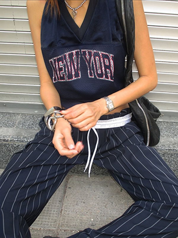 V-Ausschnitt Buchstaben Druck Ärmelloses Tanktop