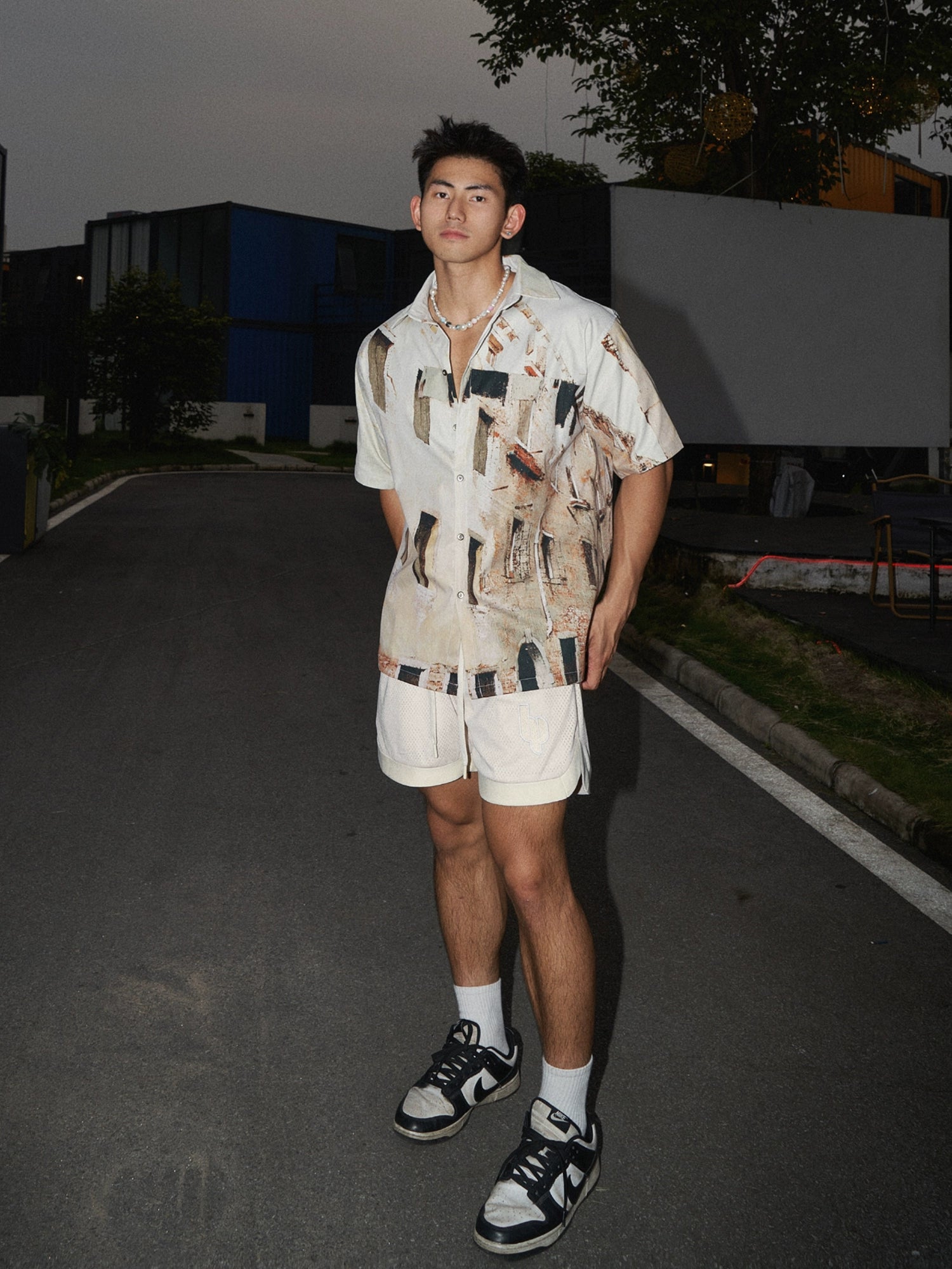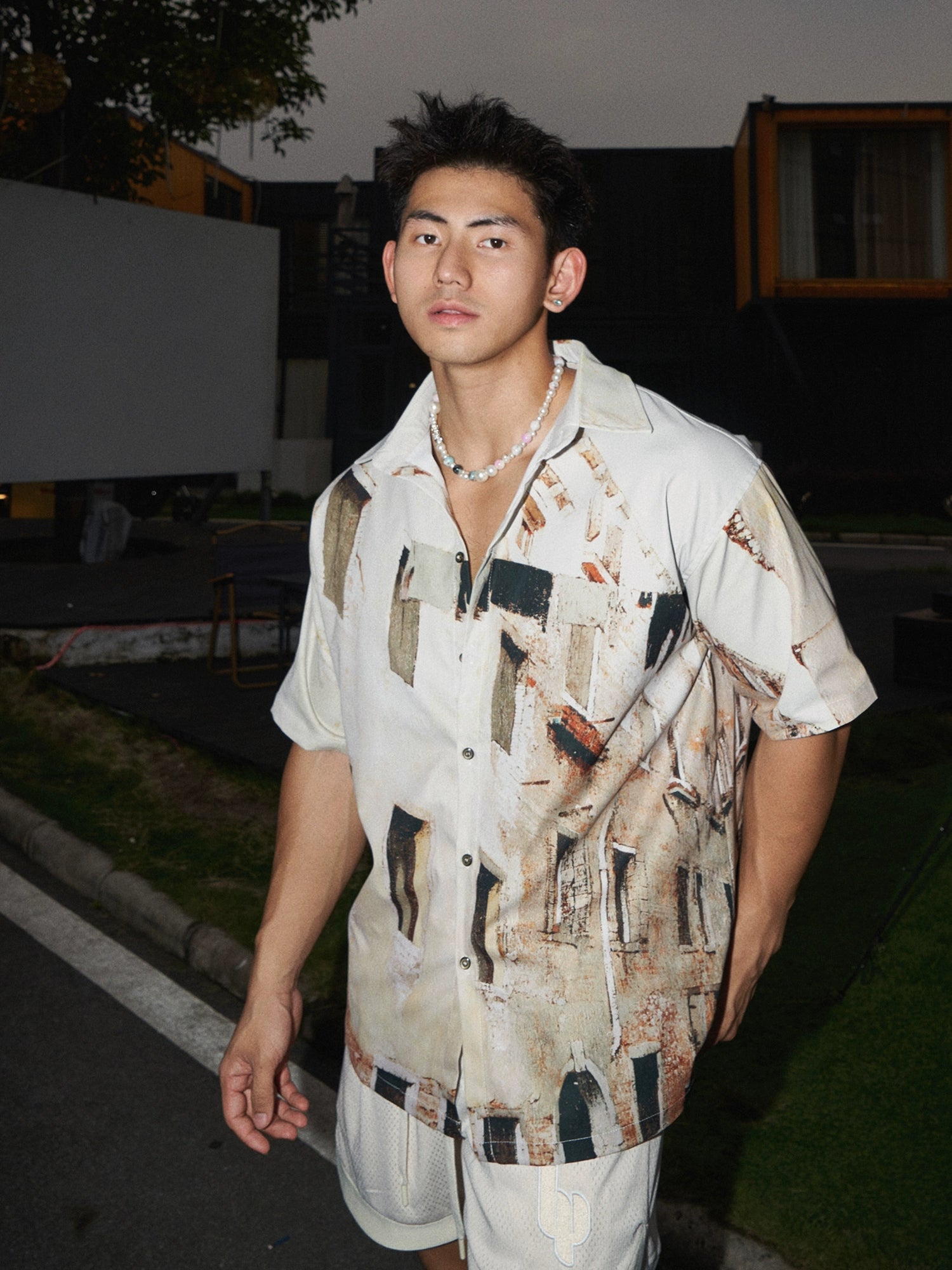 Kubanischer Kragen Entspanntes Passform Bedrucktes Hemd