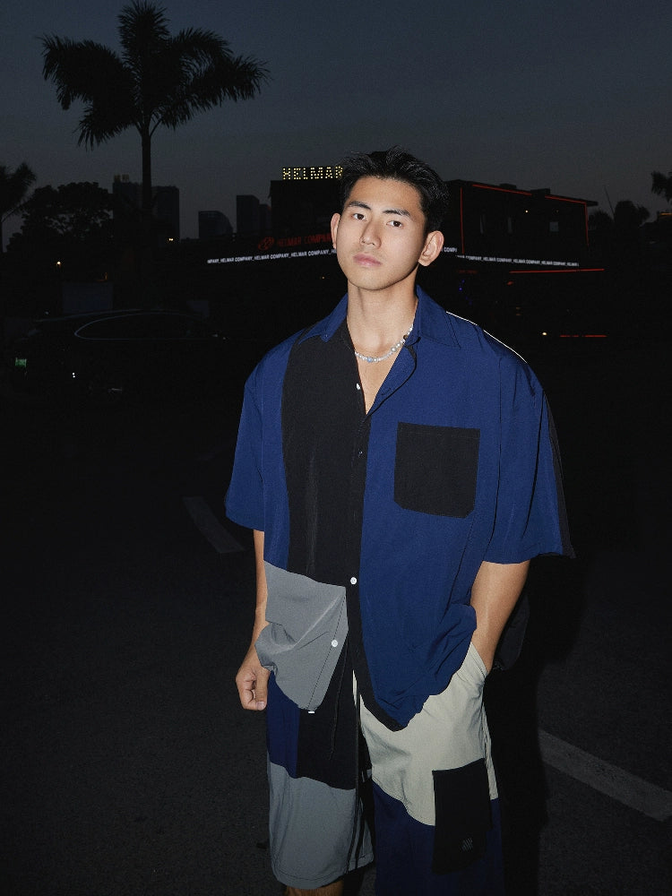 Dekonstruiertes Patchwork Kurzarmhemd Hosen Set