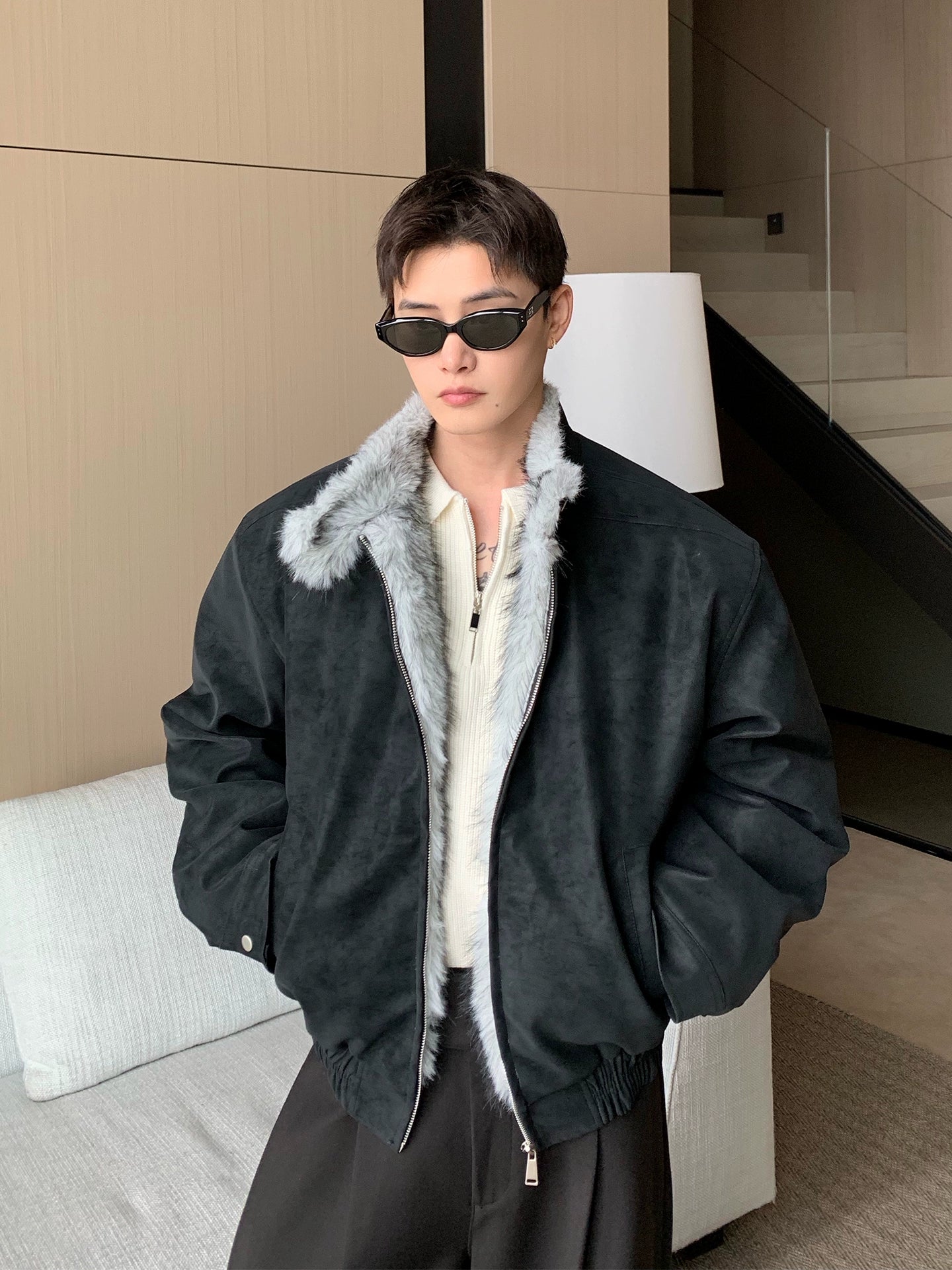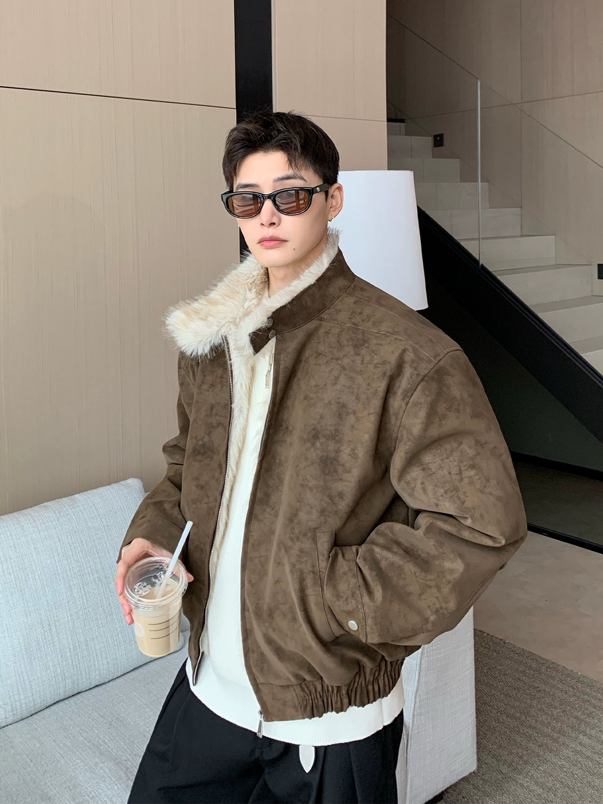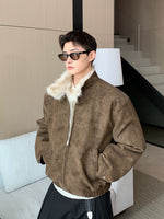 Faux-Suede-Fleece-Kragen-Pufferjacke