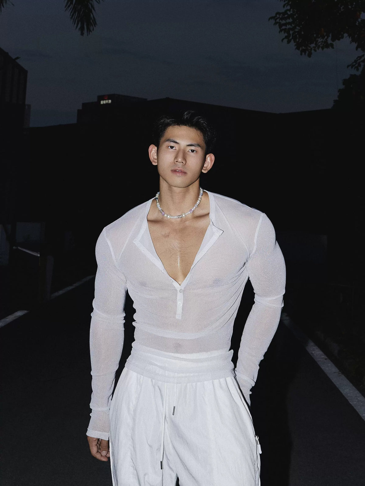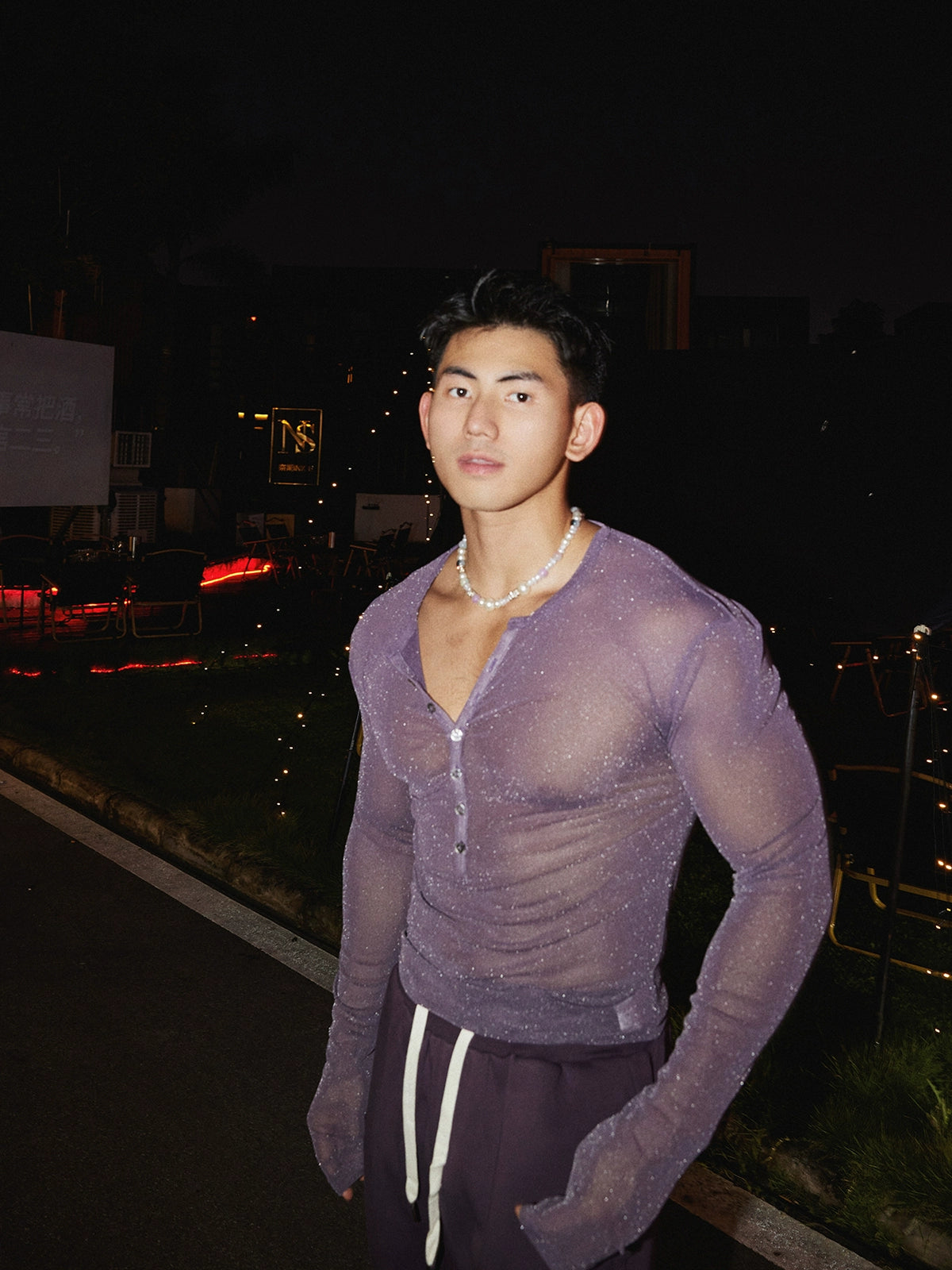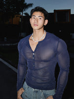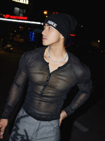 Glitzernde durchsichtige Langarm-Henley-Bluse