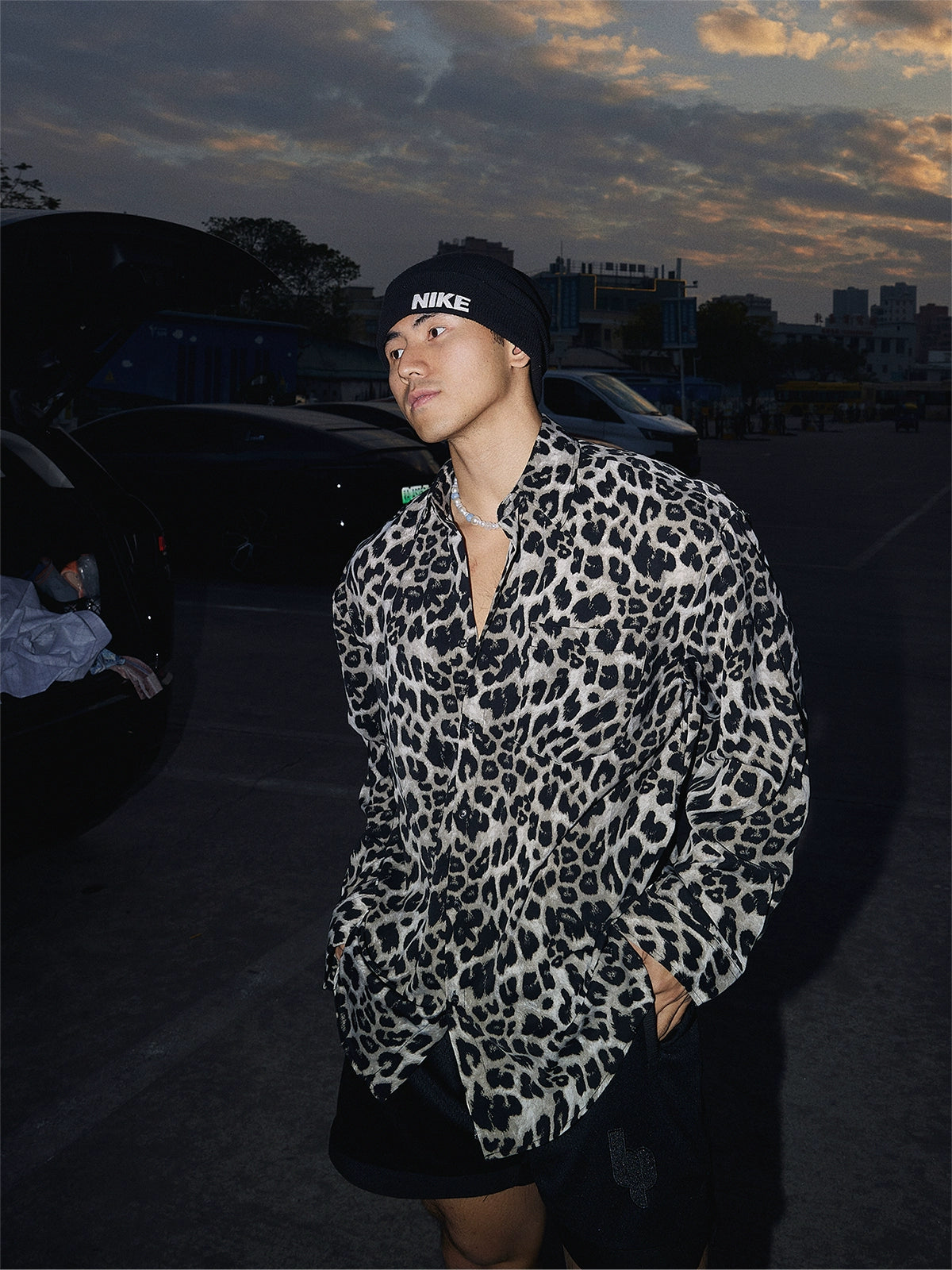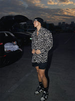 Leopardenmuster Entspanntes Passform Button-Up Hemd
