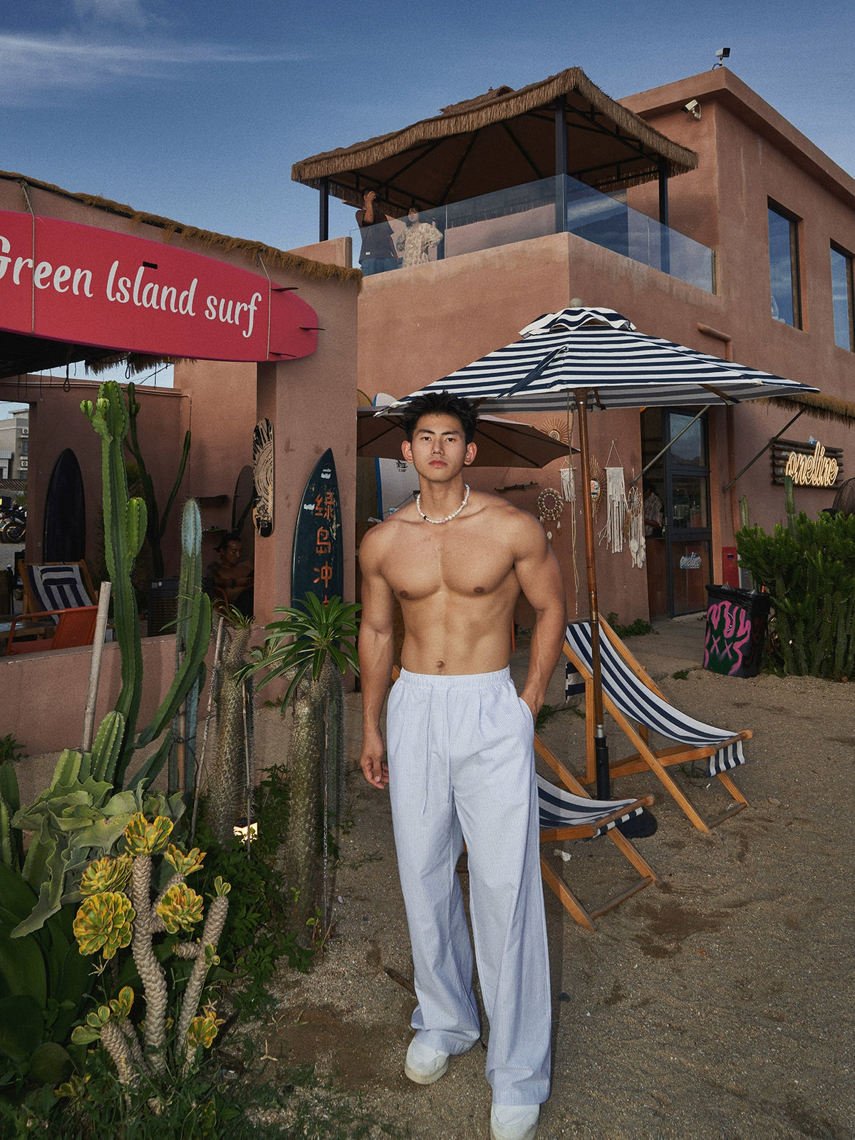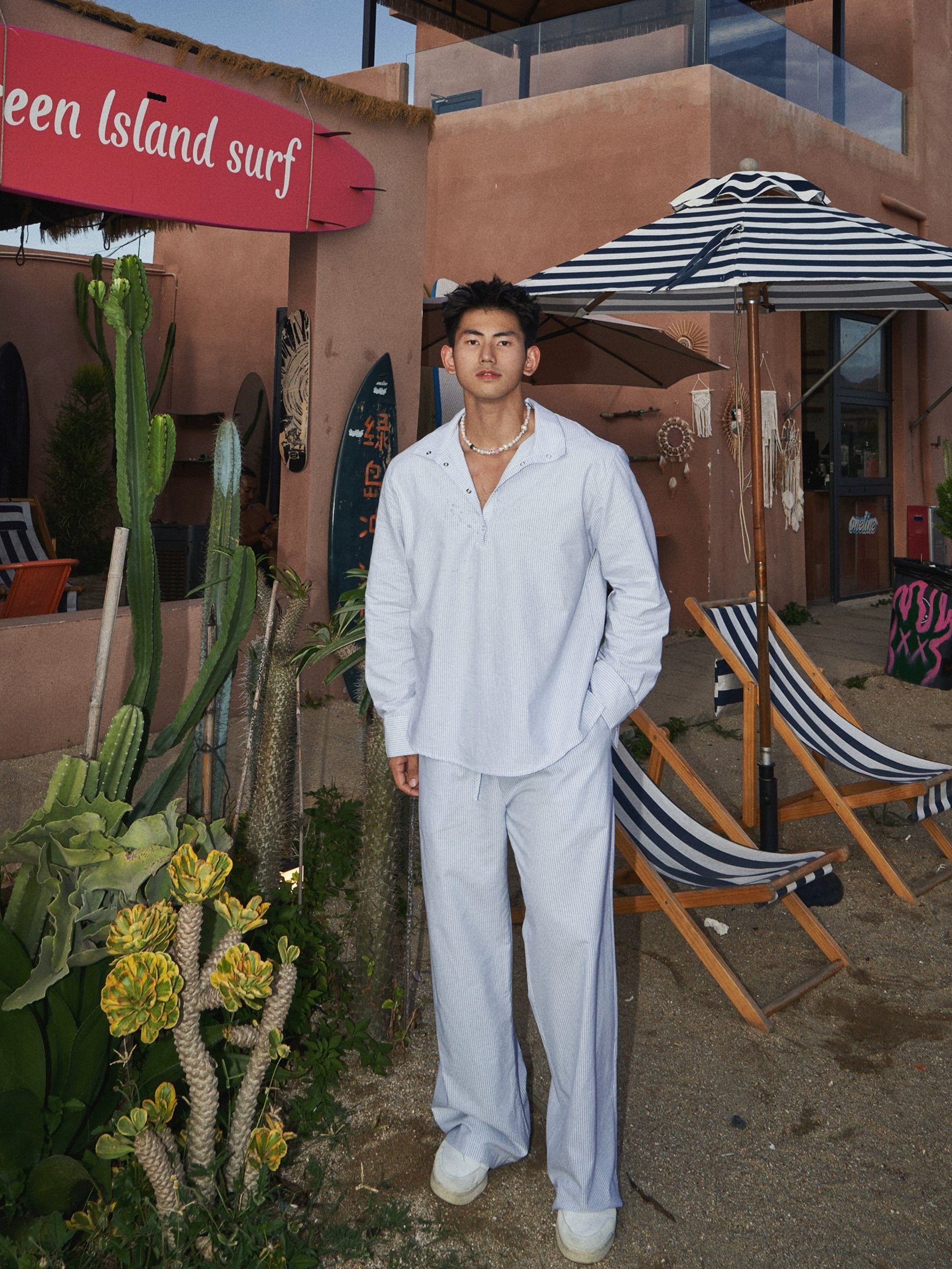 Gestreiftes, lässig geschnittenes Halb-Cardigan-Hemd