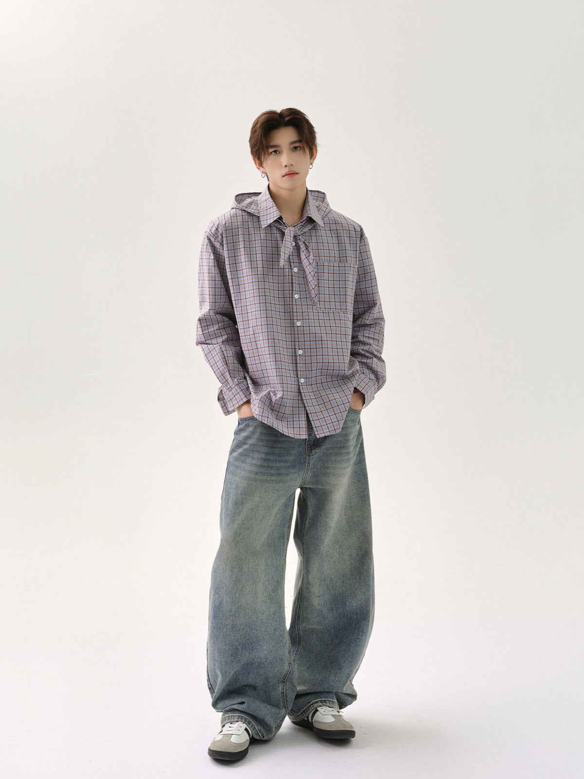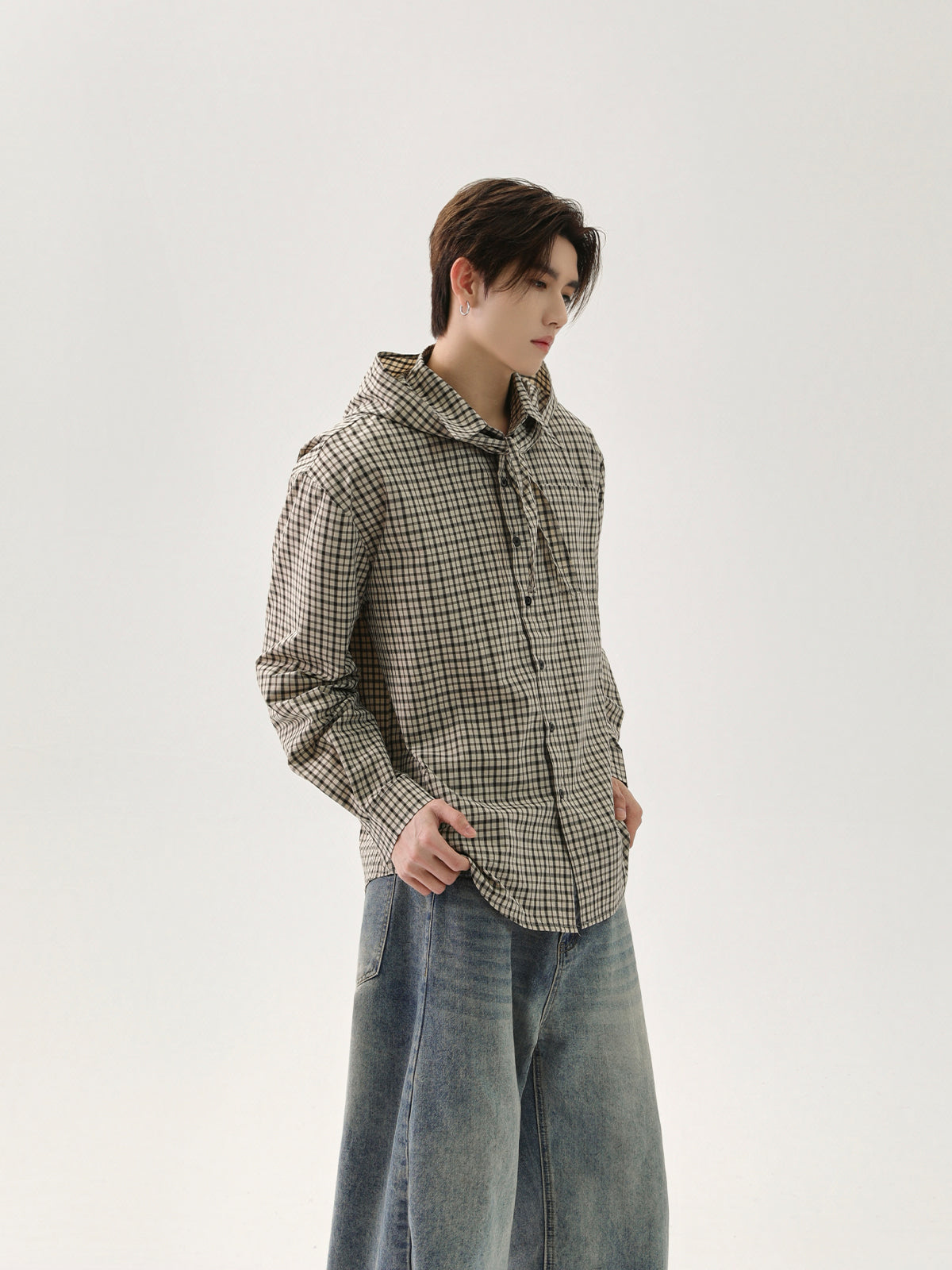 Plaid Hooded Shawl Cardigan Shirt