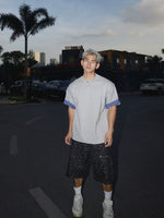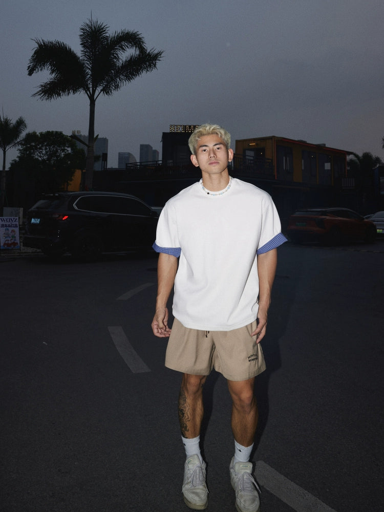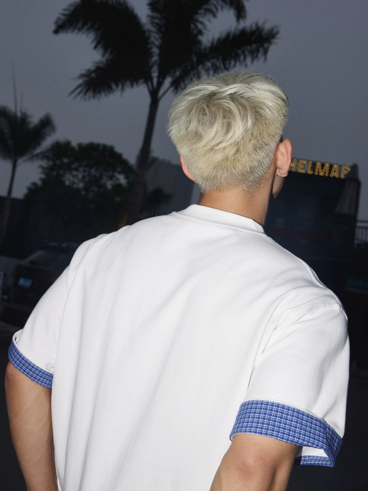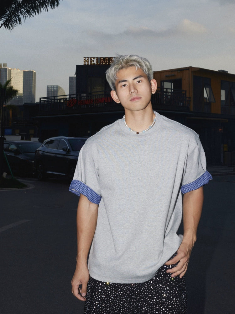 Kariertes Ärmel Lockerer Sitz College Pullover