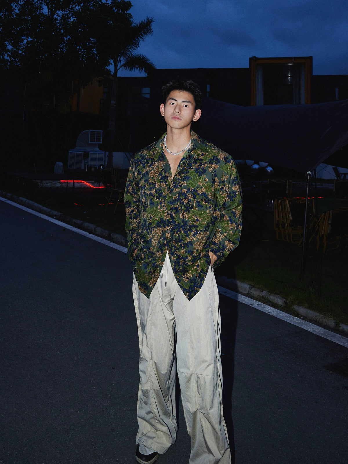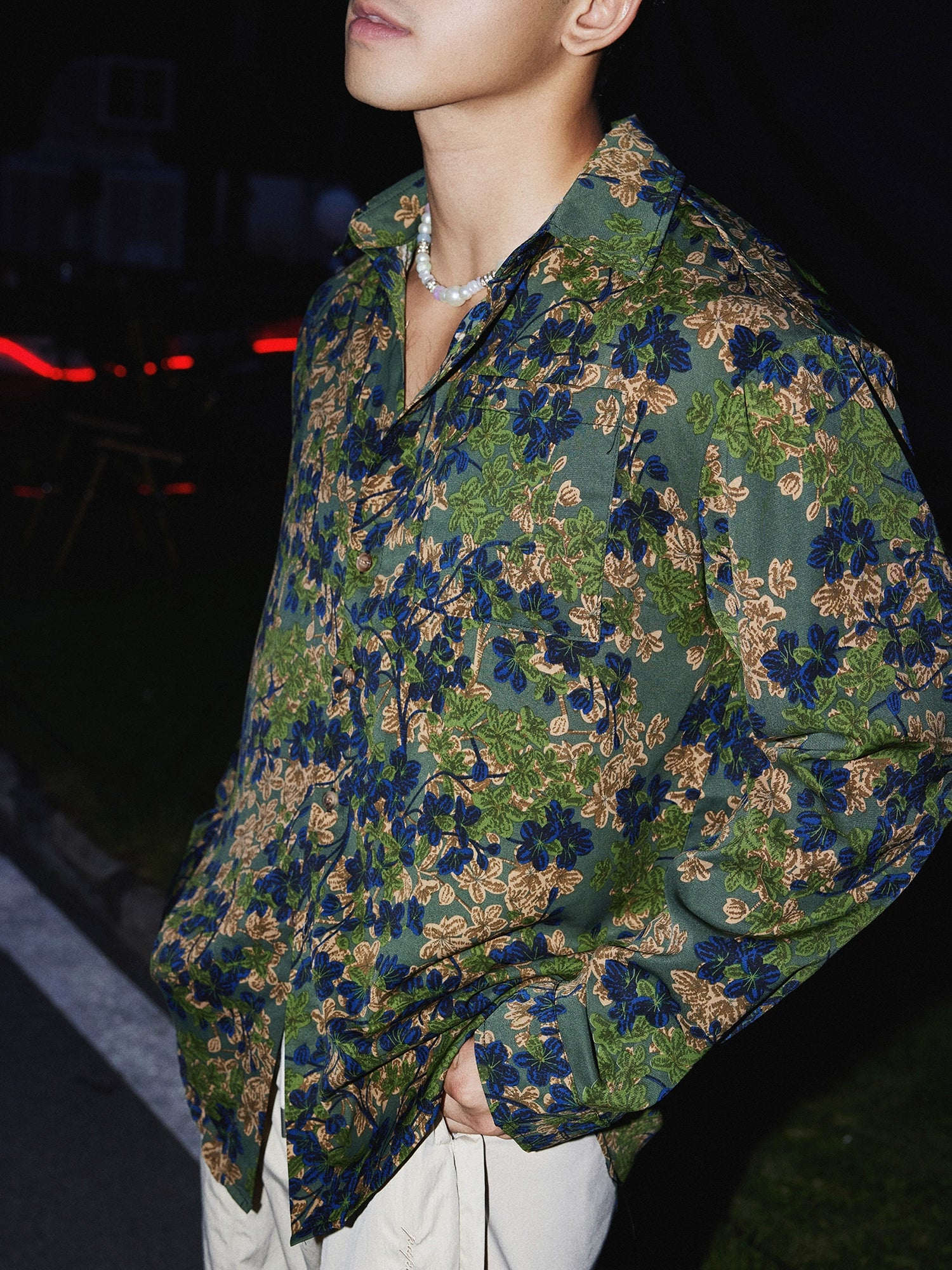Retro-Kamelien-Druck Relaxed Fit Hemd