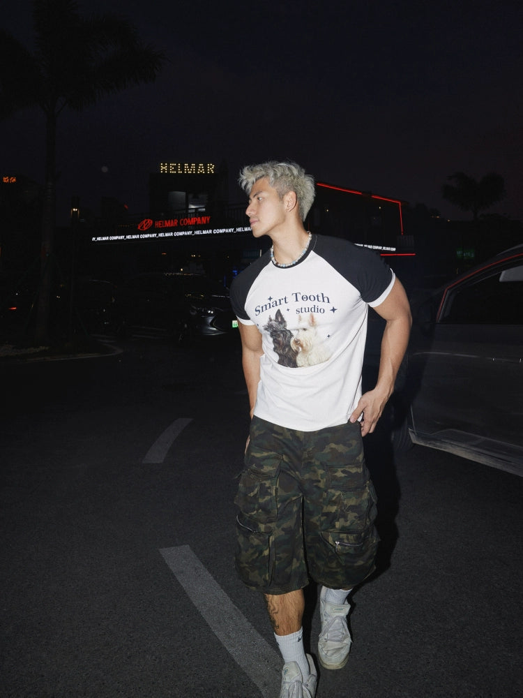 Retro Welpen Grafik Raglan Ärmel T-Shirt