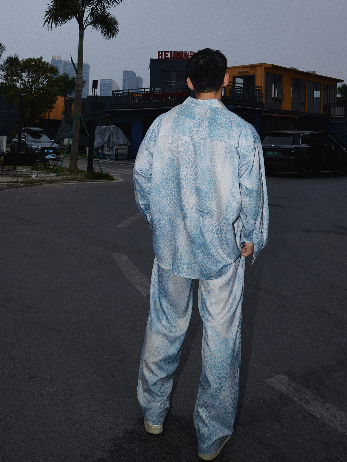 Texturiertes Leopardenmuster Entspanntes Fit Hemd