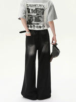 Gewaschene, distressed, weit geschnittene Jeanshose