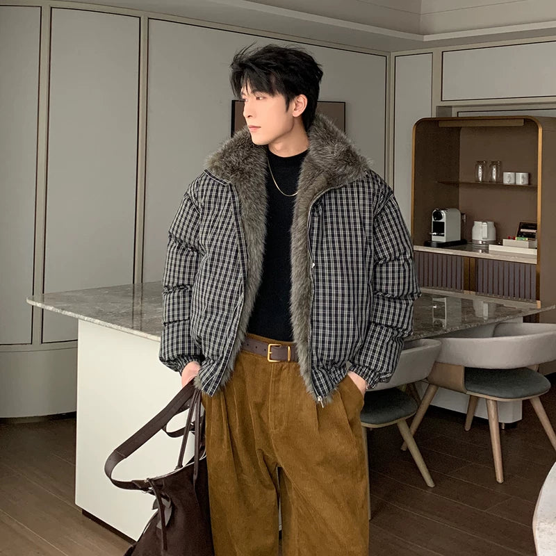 Hahnentritt Kapuzenisolierte Lockere Passform Jacke