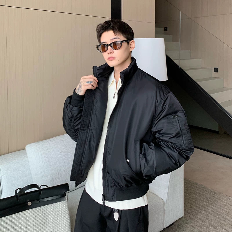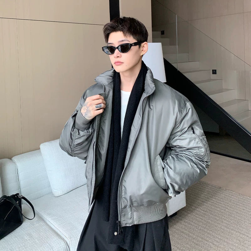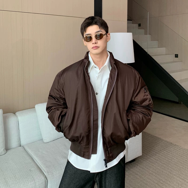 Satin wasserabweisende Stehkragen-Bomberjacke
