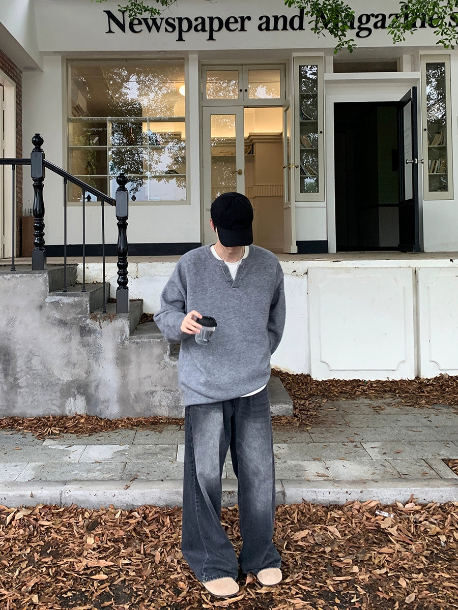 V-Ausschnitt Lockere Strickpullover