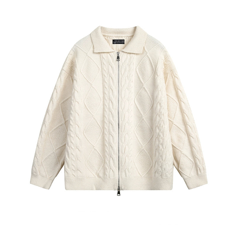 • Pattern: Three-dimensional diamond cable knit, full of texture