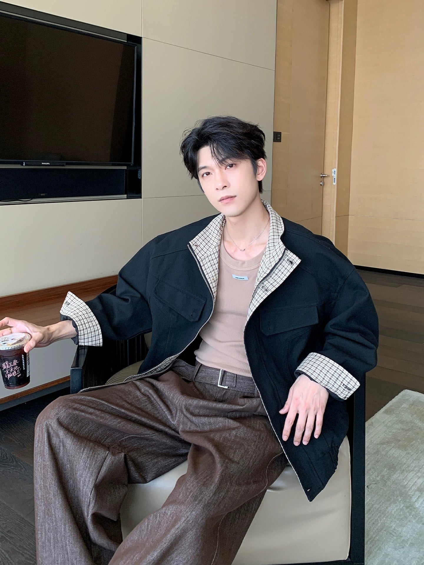 Kariertes, gefüttertes Harrington-Zweiteiliges Jackett