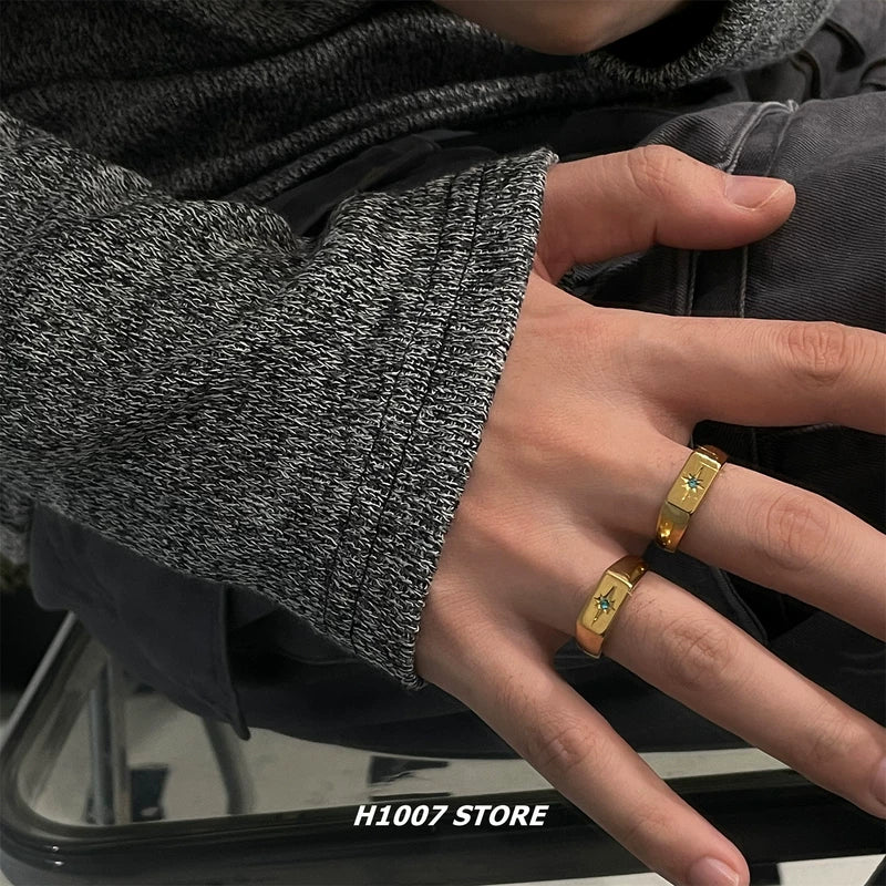 Stern gravierte Edelstein-Signet-Ring