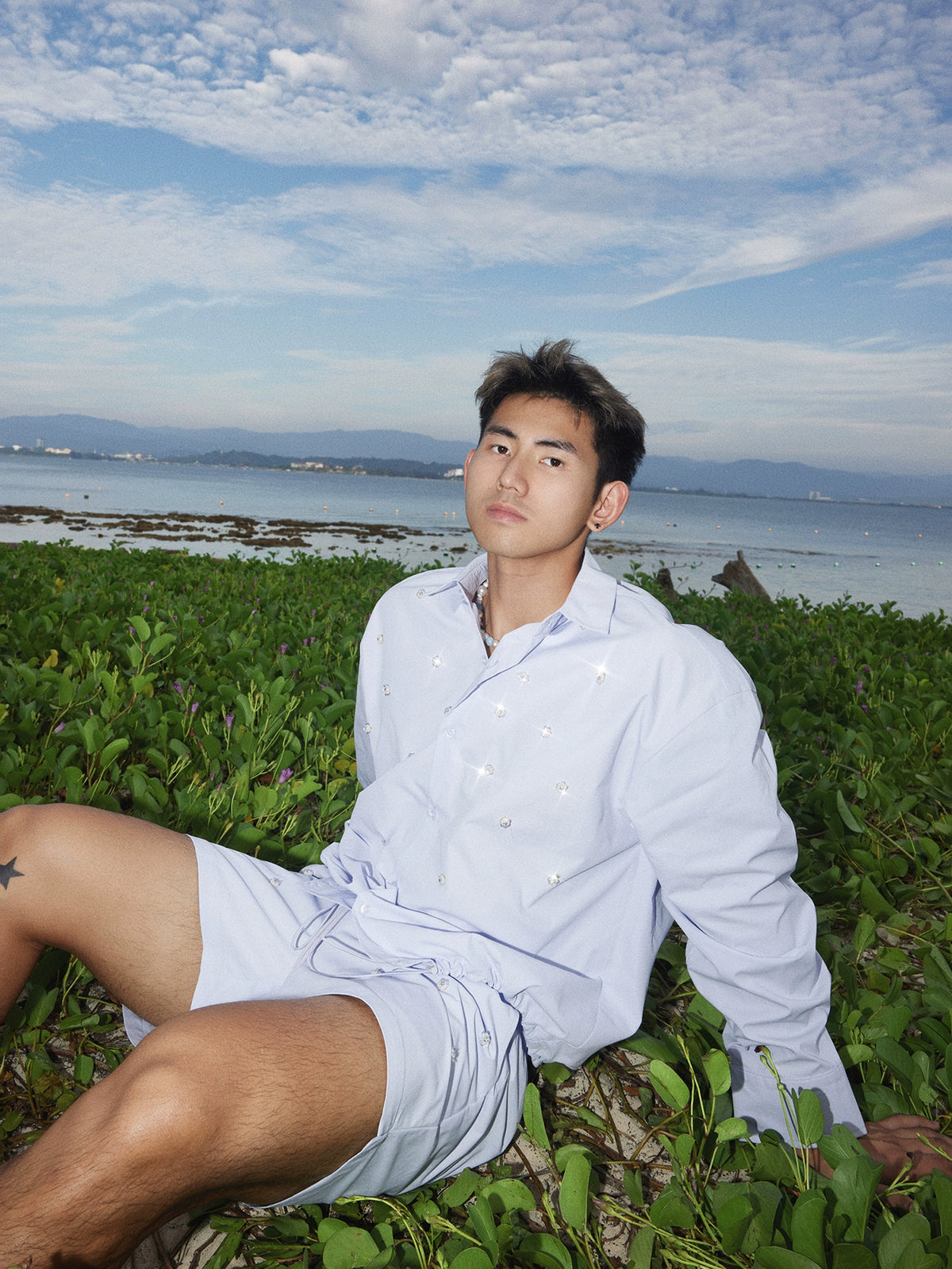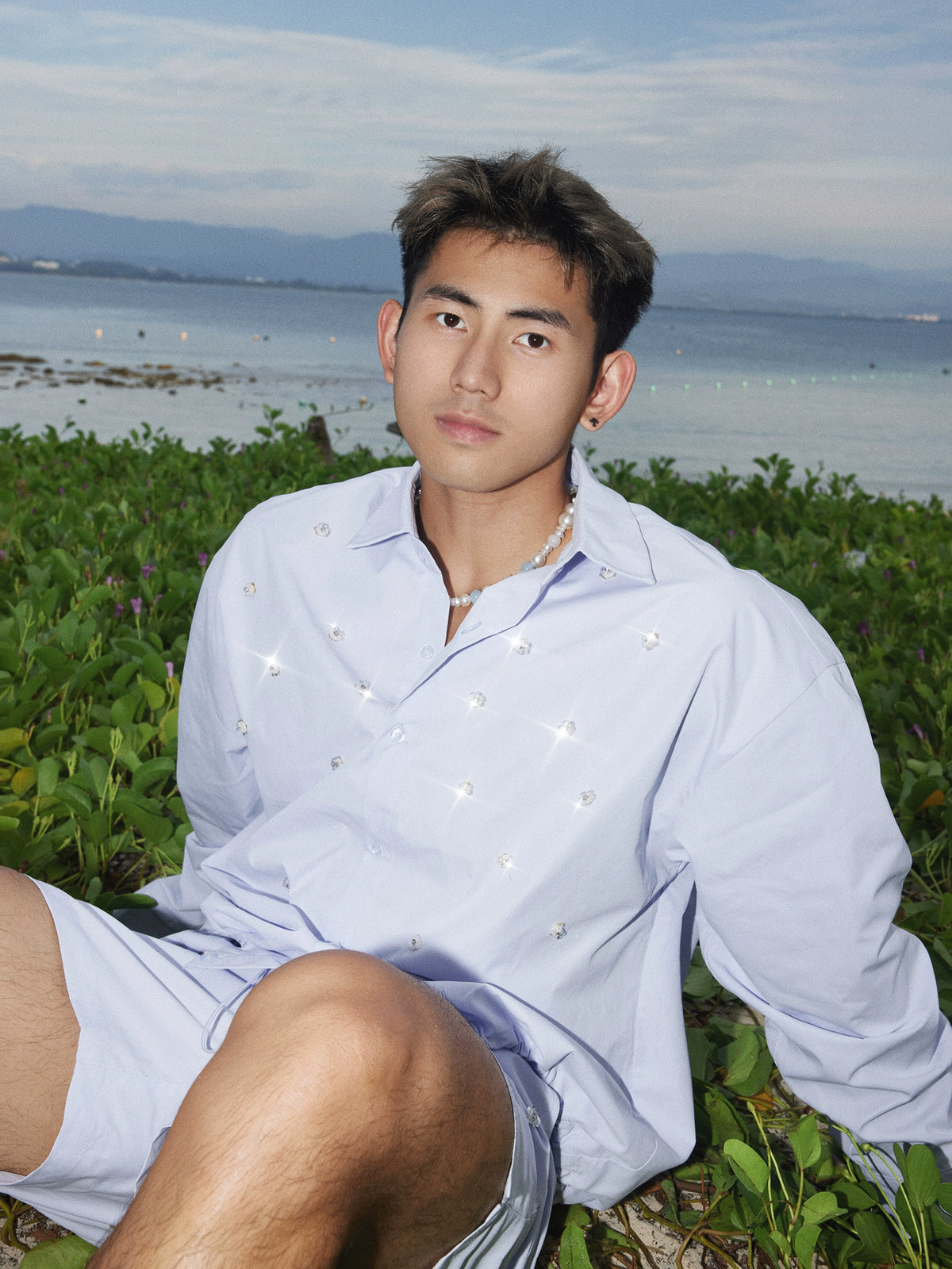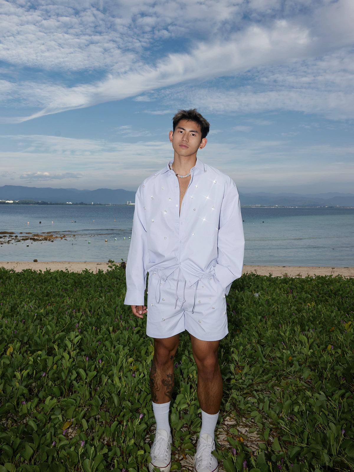 Solid Color Beaded Shirt and Shorts