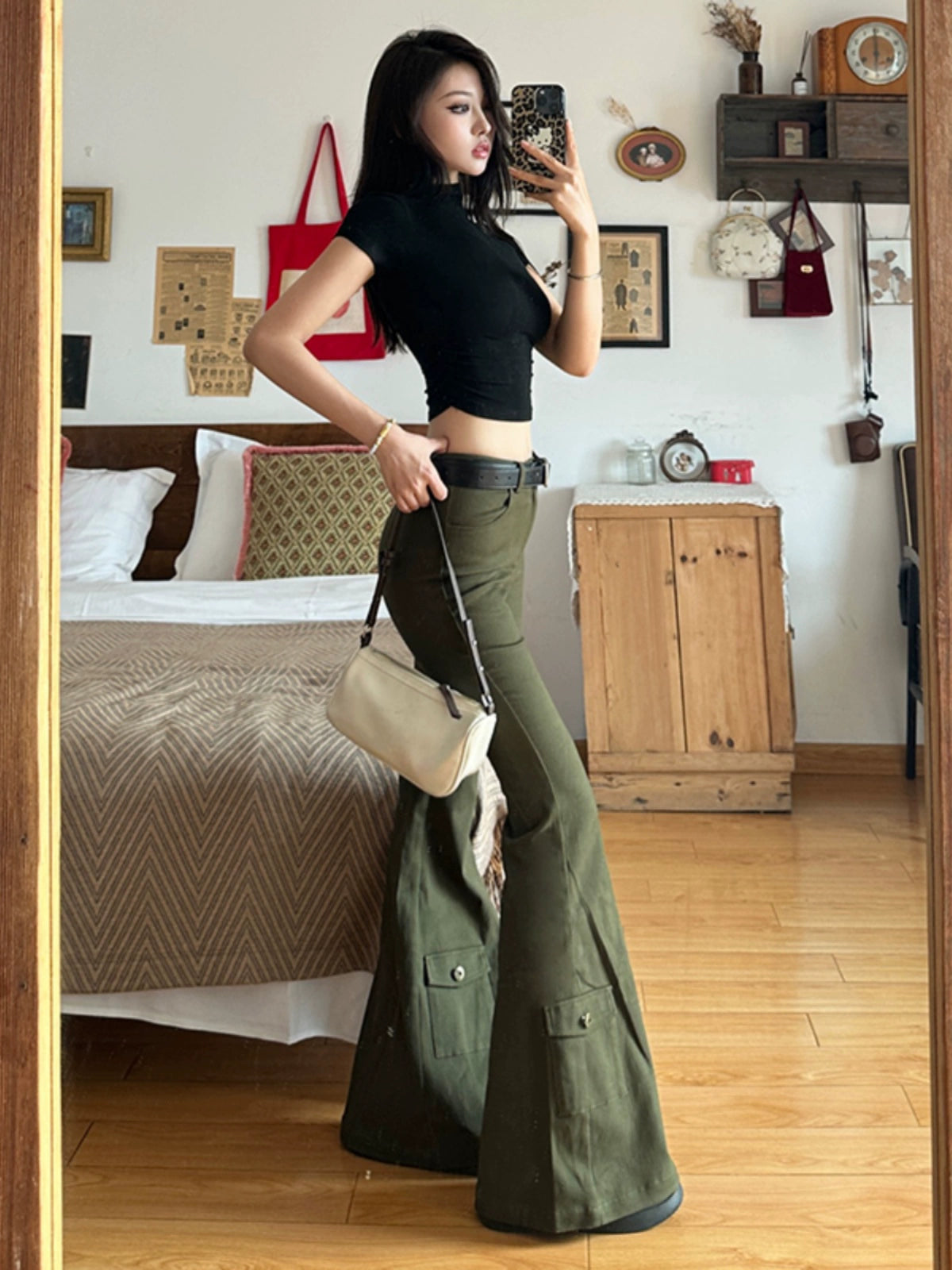 High Waist Flared Casual Cargo Pants