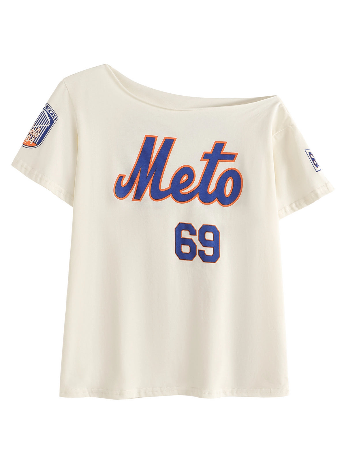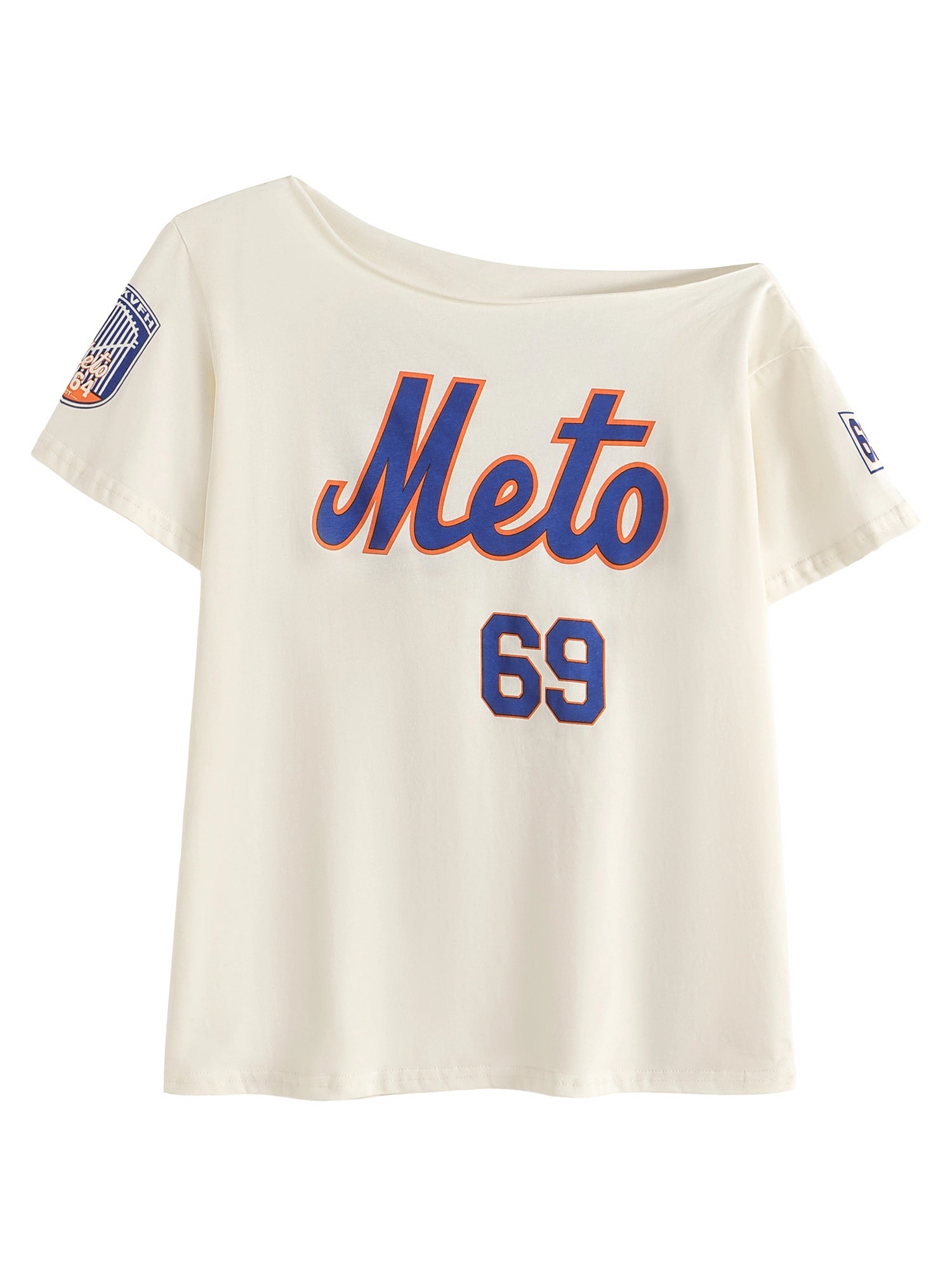 Letter Print One-Shoulder Loose T-Shirt