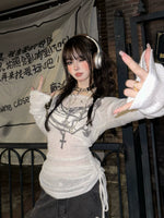 Off-Shoulder Long-sleeved Drawstring Top
