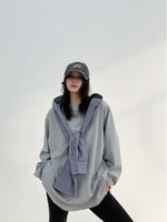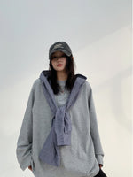 Blue Plaid Patchwork Long-sleeved Sweatshirt