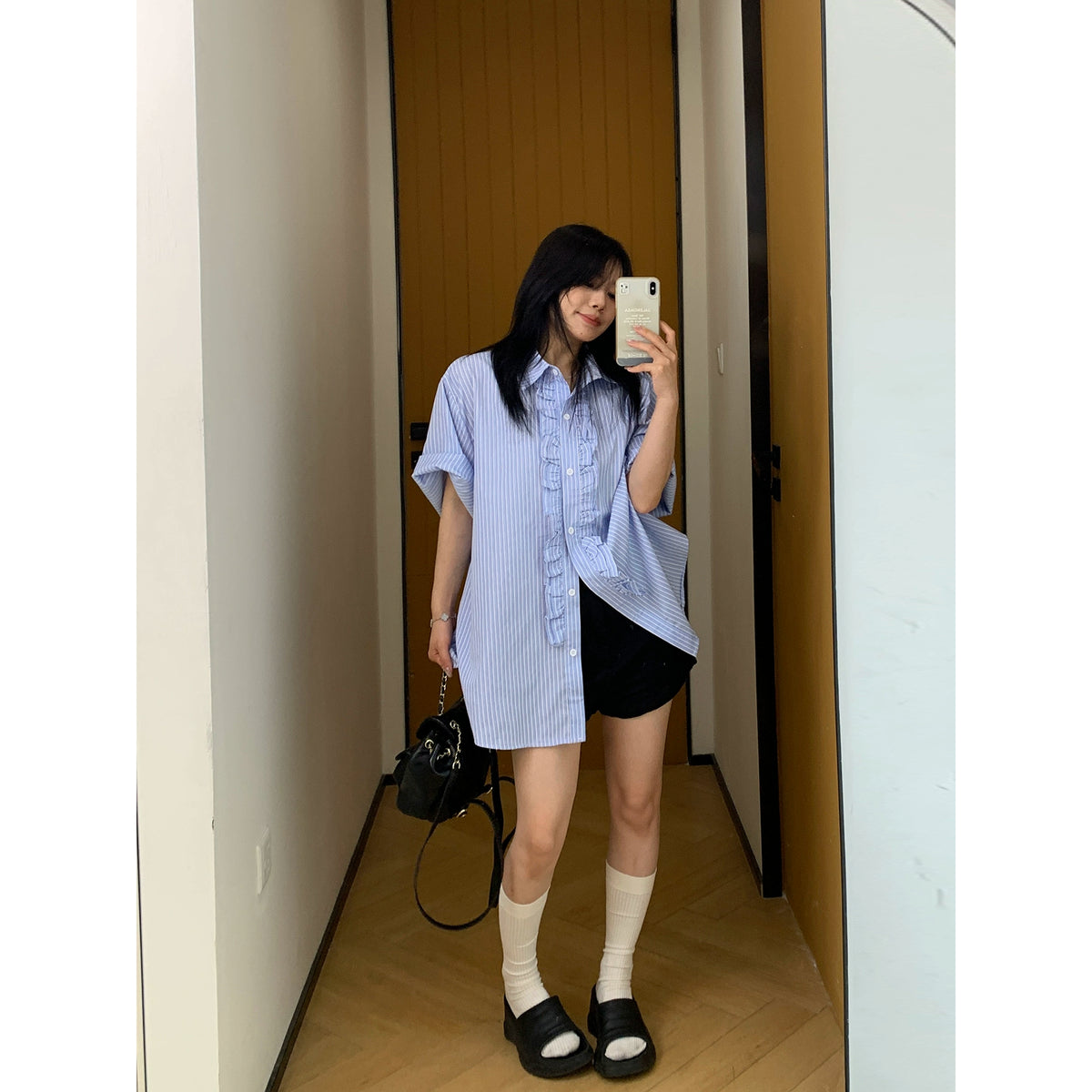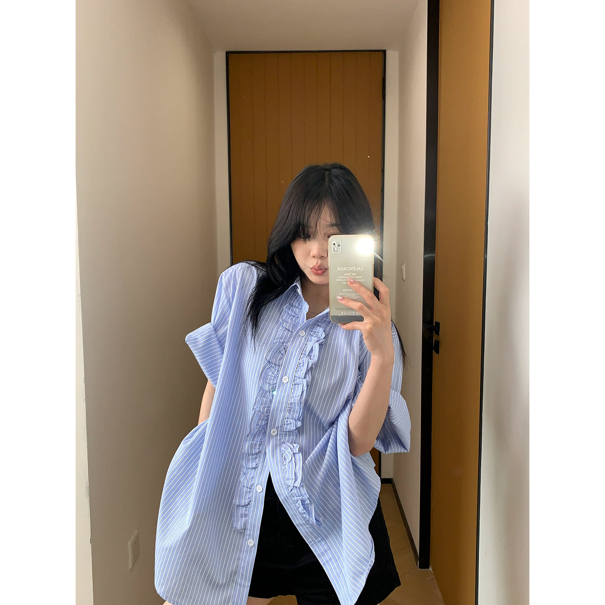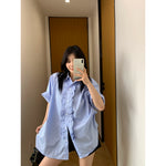 Vertical Striped Lace Short Sleeve Shirt