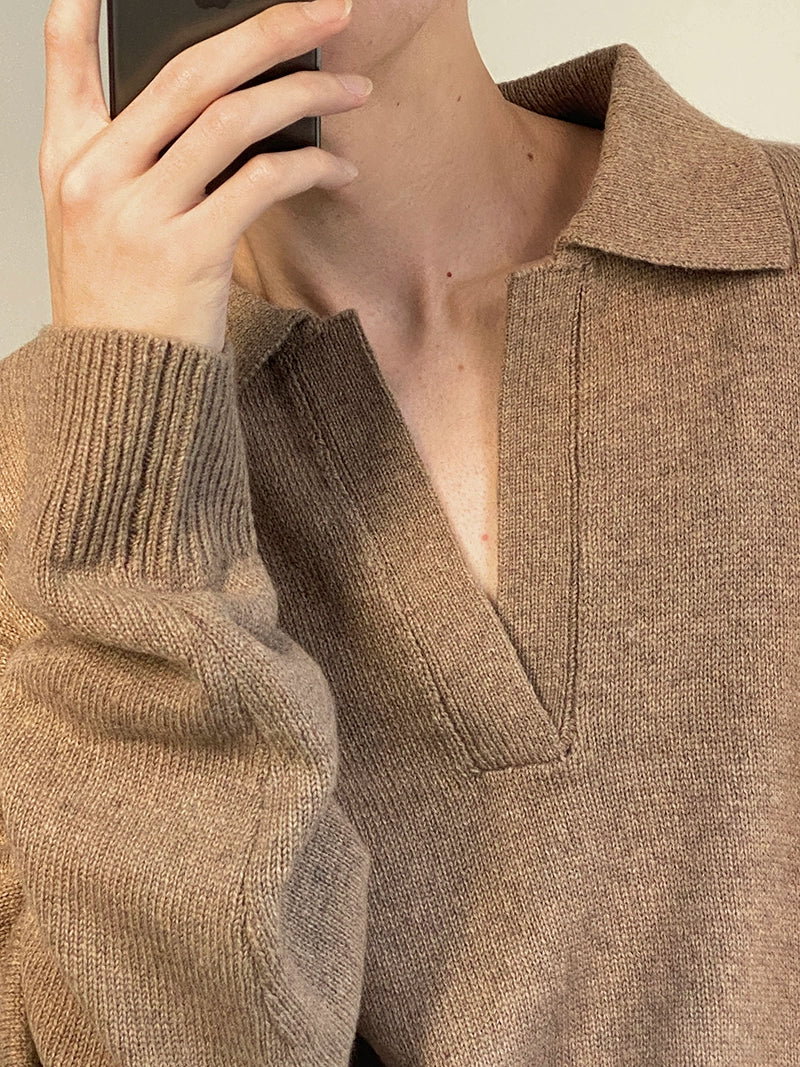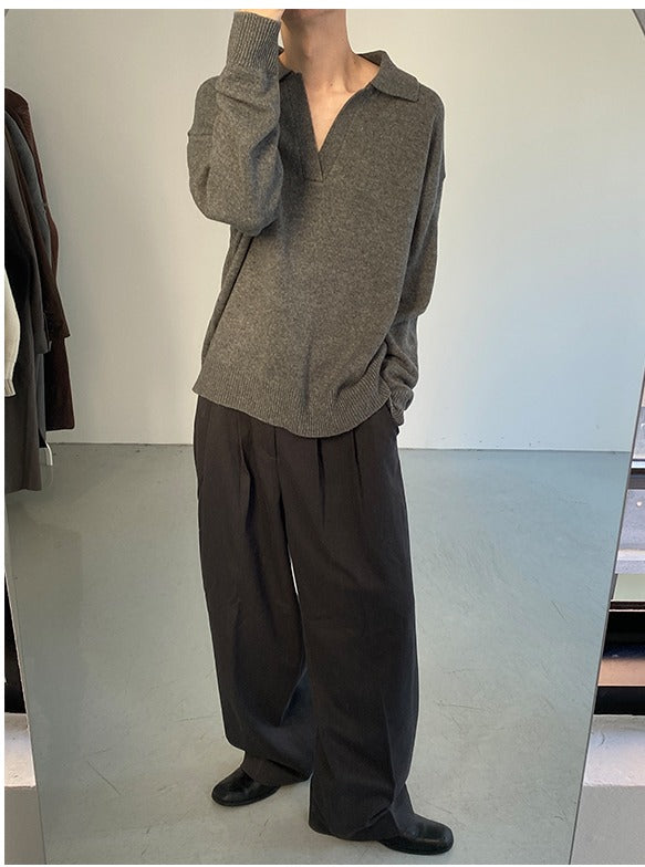 V-neck Lapel Knit Sweater Pullover