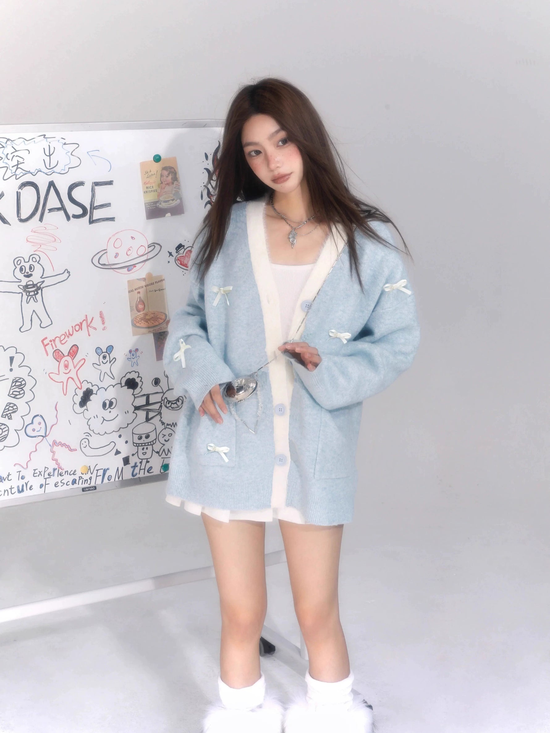 V-neck Bow Knit Cardigan Sweater