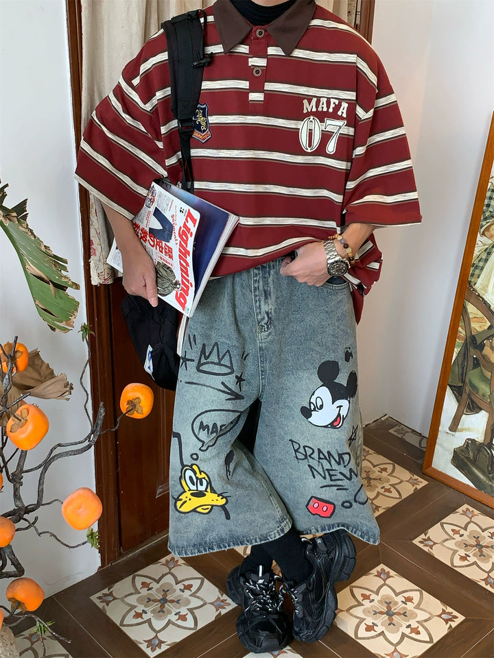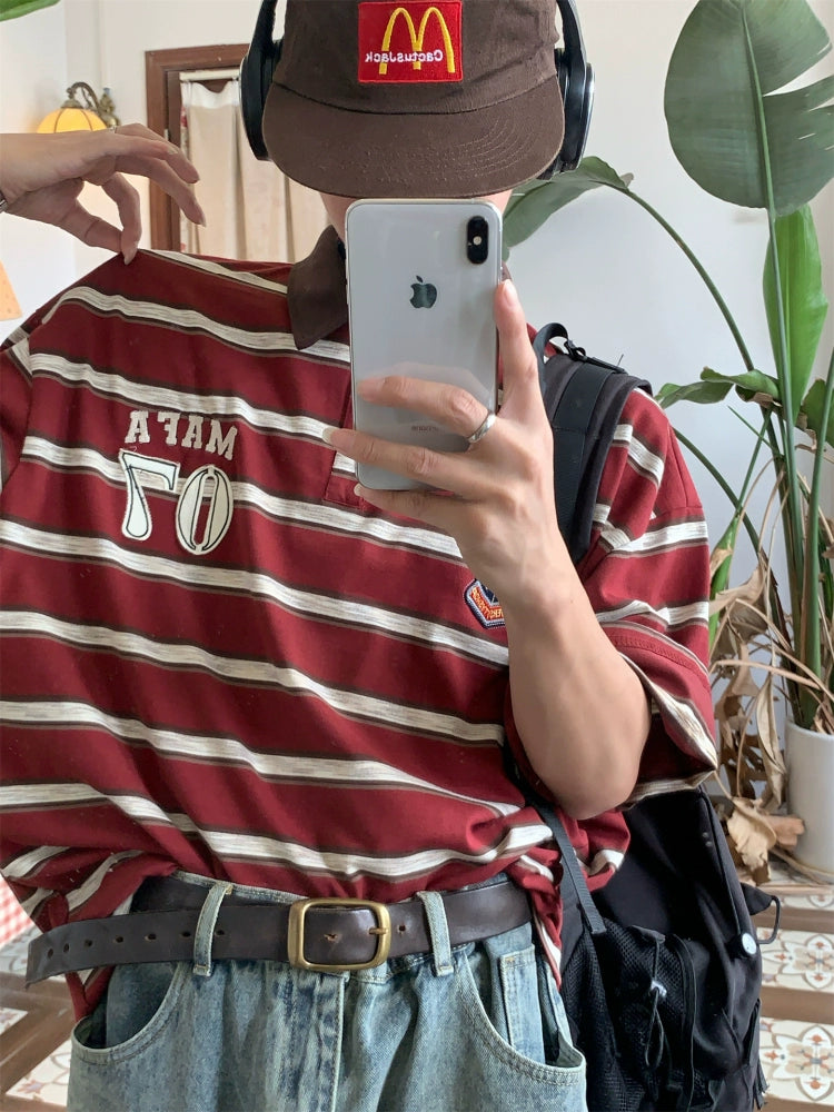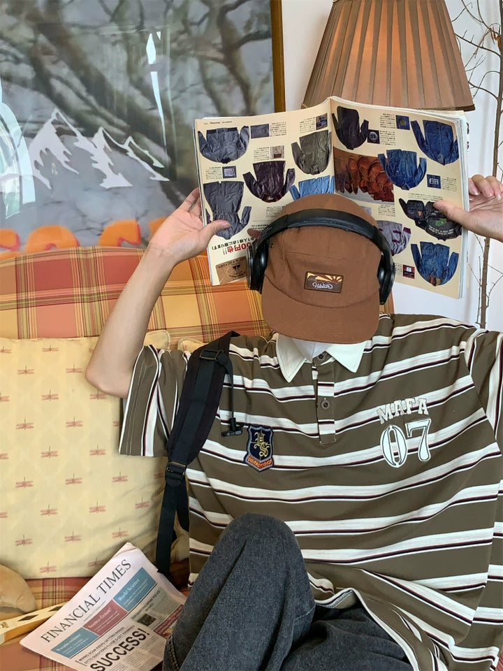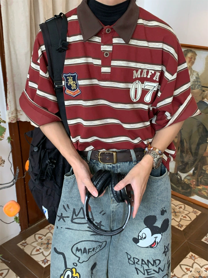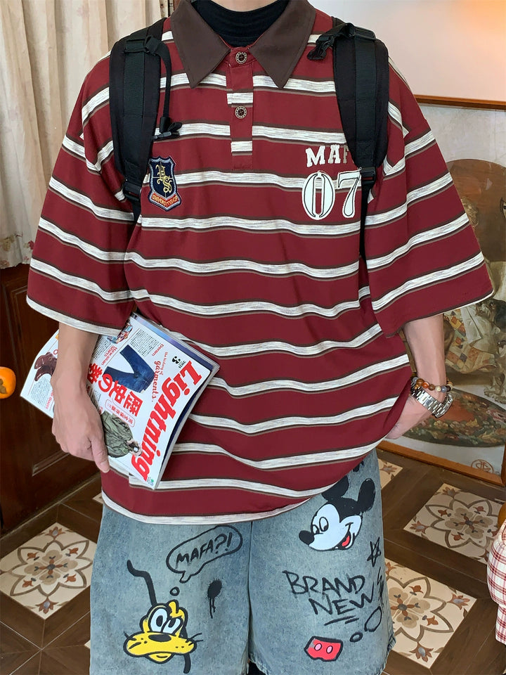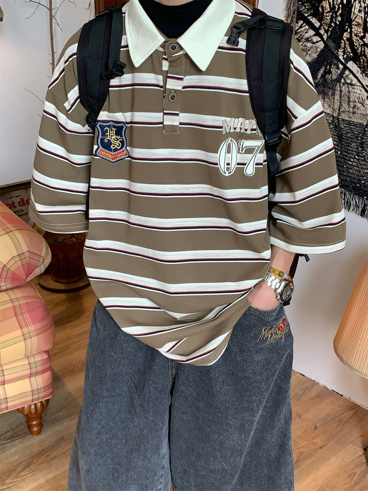 Striped College Style Short Sleeve Polo Shirt