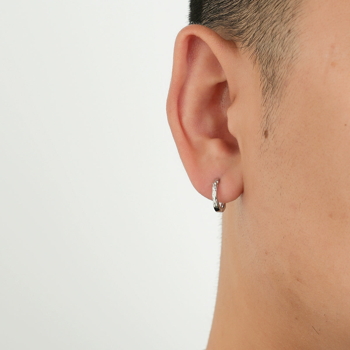 Sterling Silver Textured Hoop Earrings
