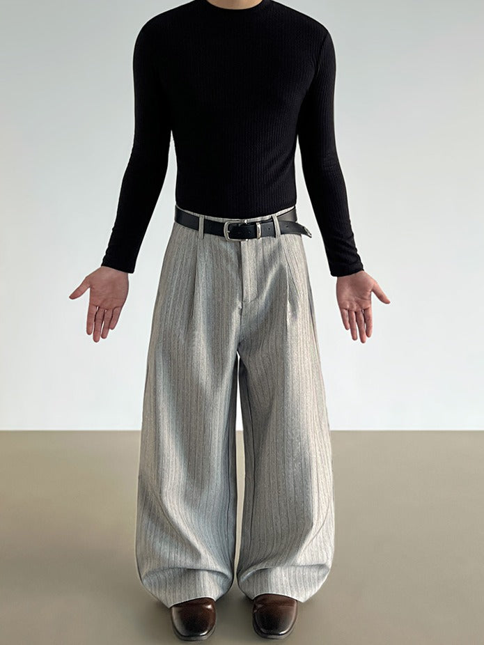 Pinstripe Wide Leg Casual Pants