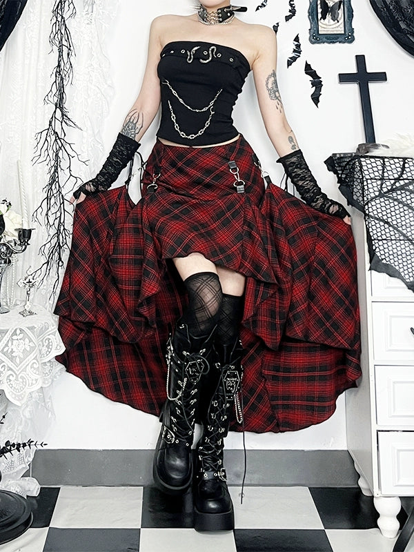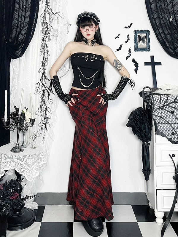 Gothic Plaid Skirt and Strapless Vest