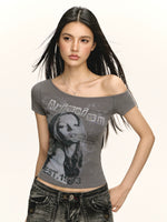 Graphic Off-Shoulder Short Sleeve T-Shirt