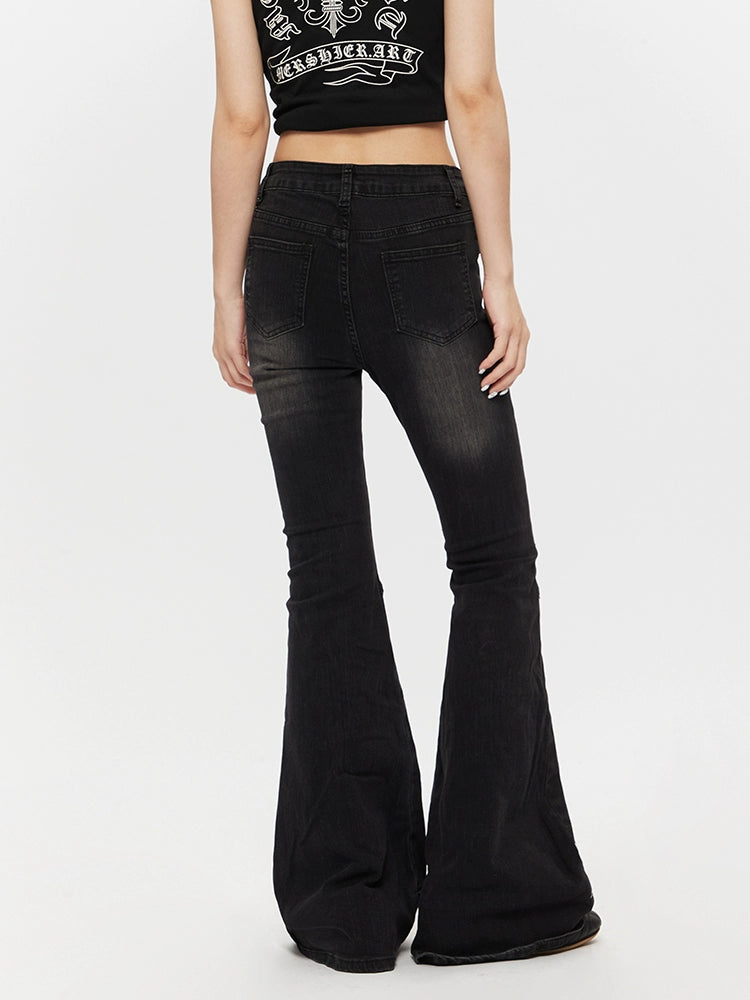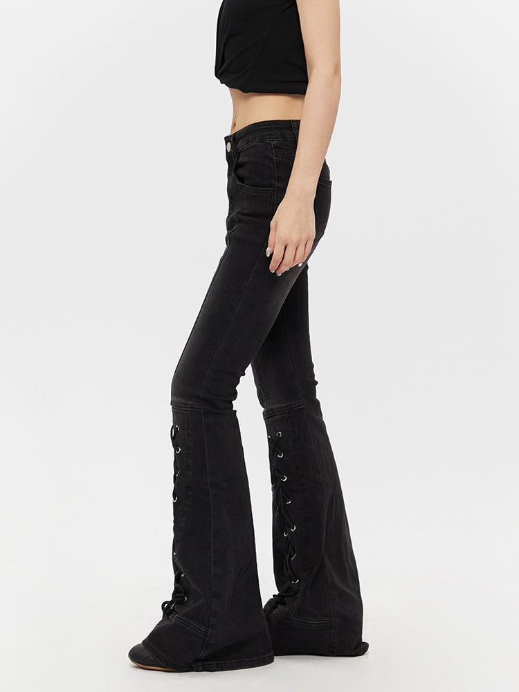 High Waist Flared Lace-Up Jeans Pants