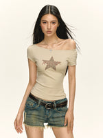 Off Shoulder Short Sleeve Graphic T-Shirt
