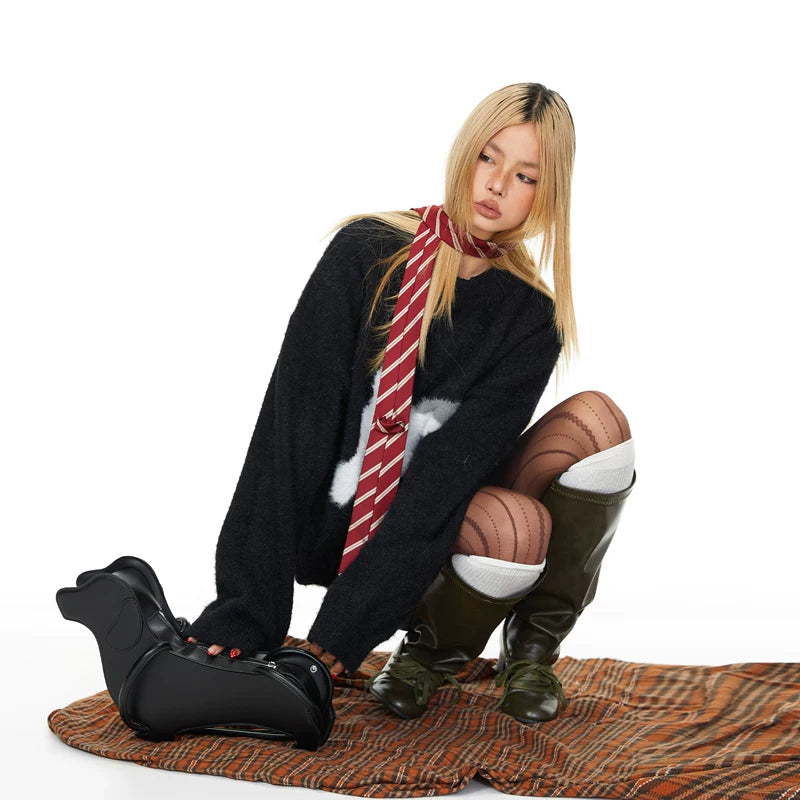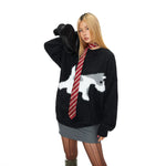 Puppy Print Loose Crew Neck Sweater
