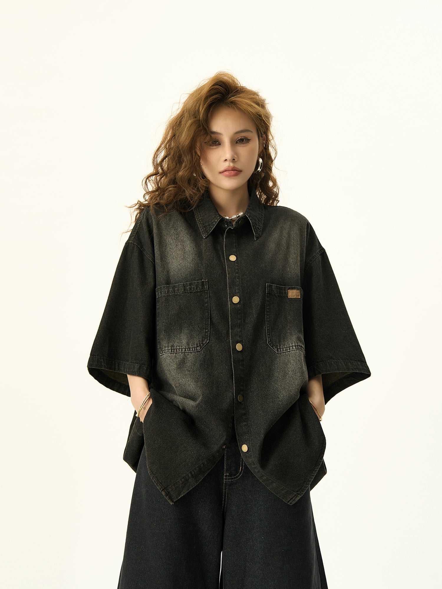 Retro Washed Denim Short Sleeve Shirt