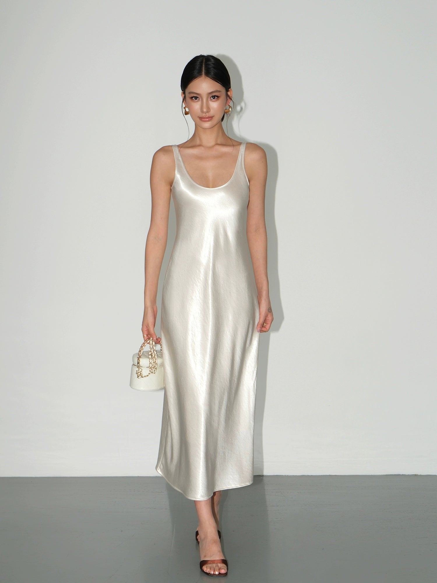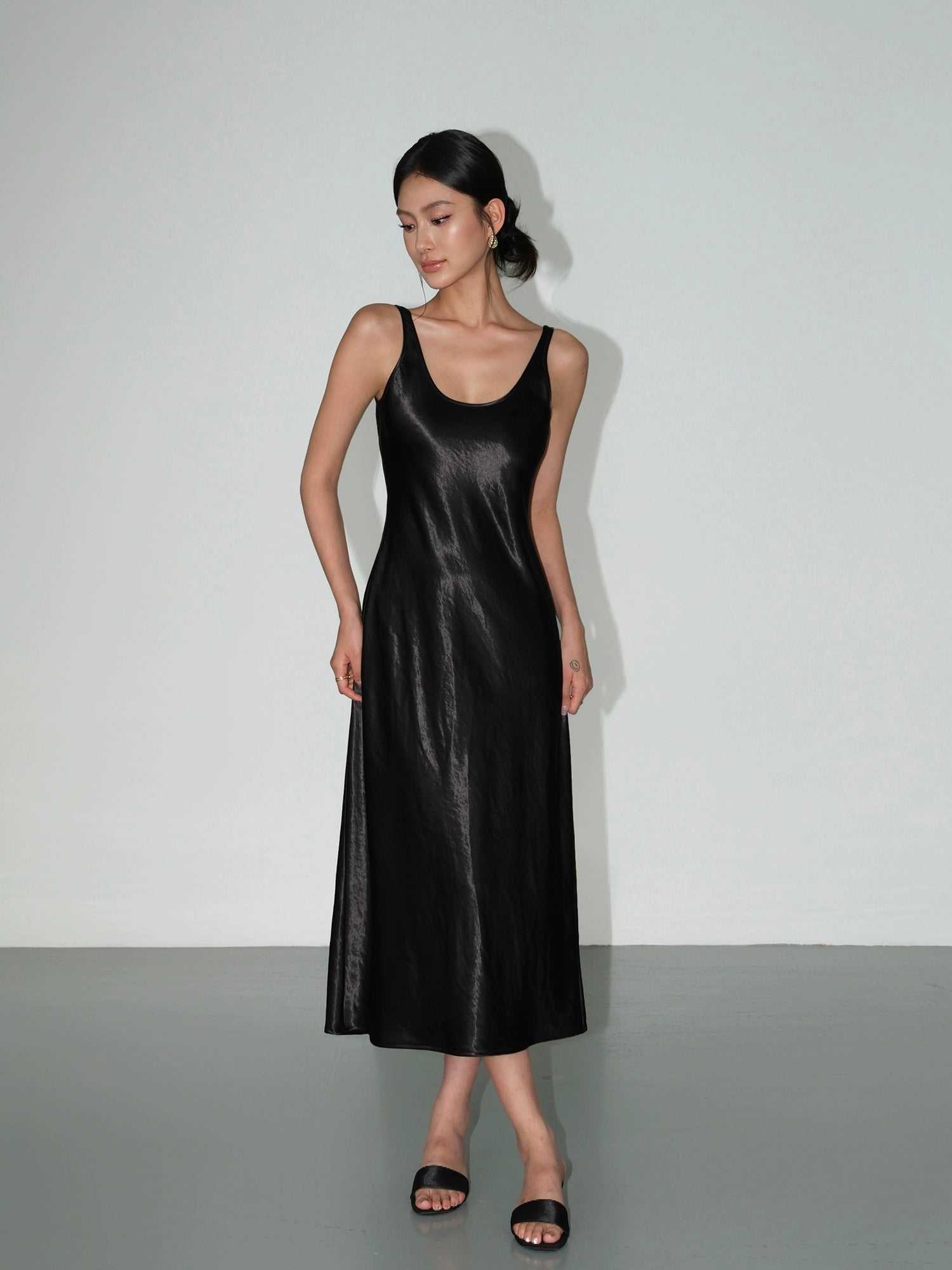 Satin Sleeveless Drape Slip Dress
