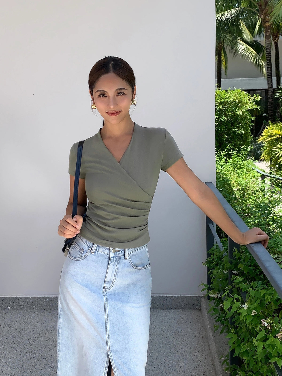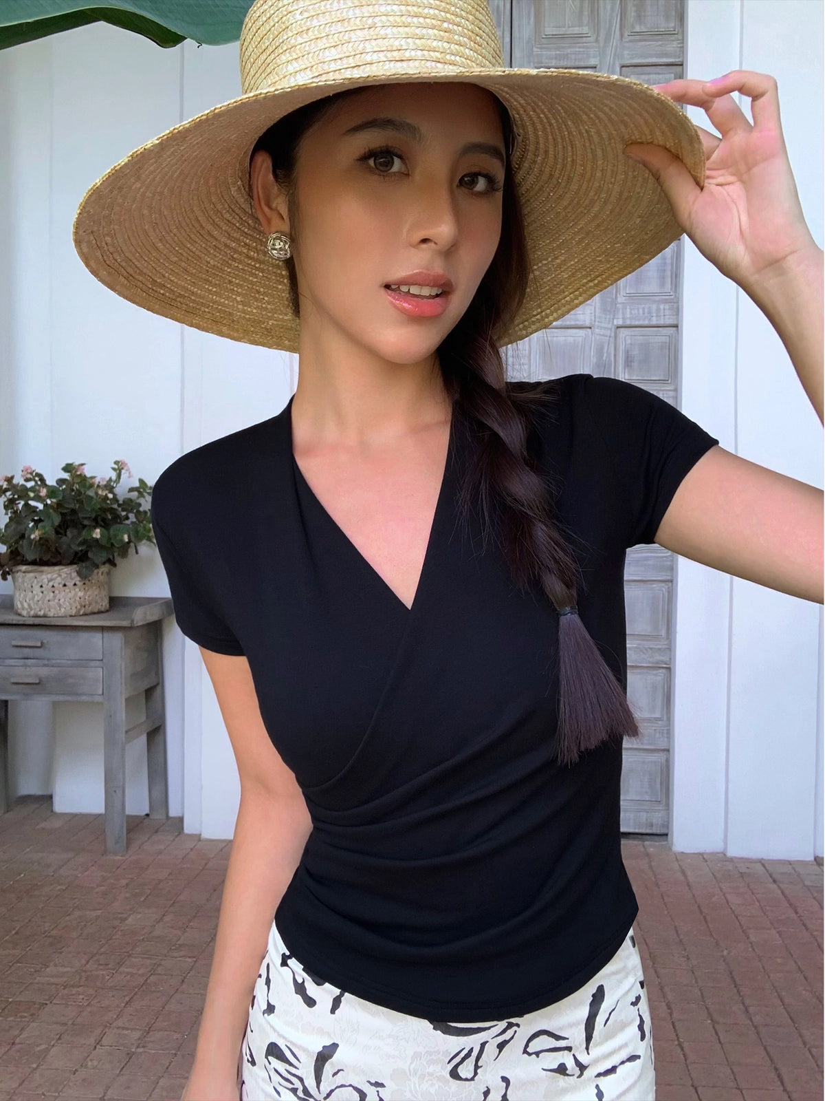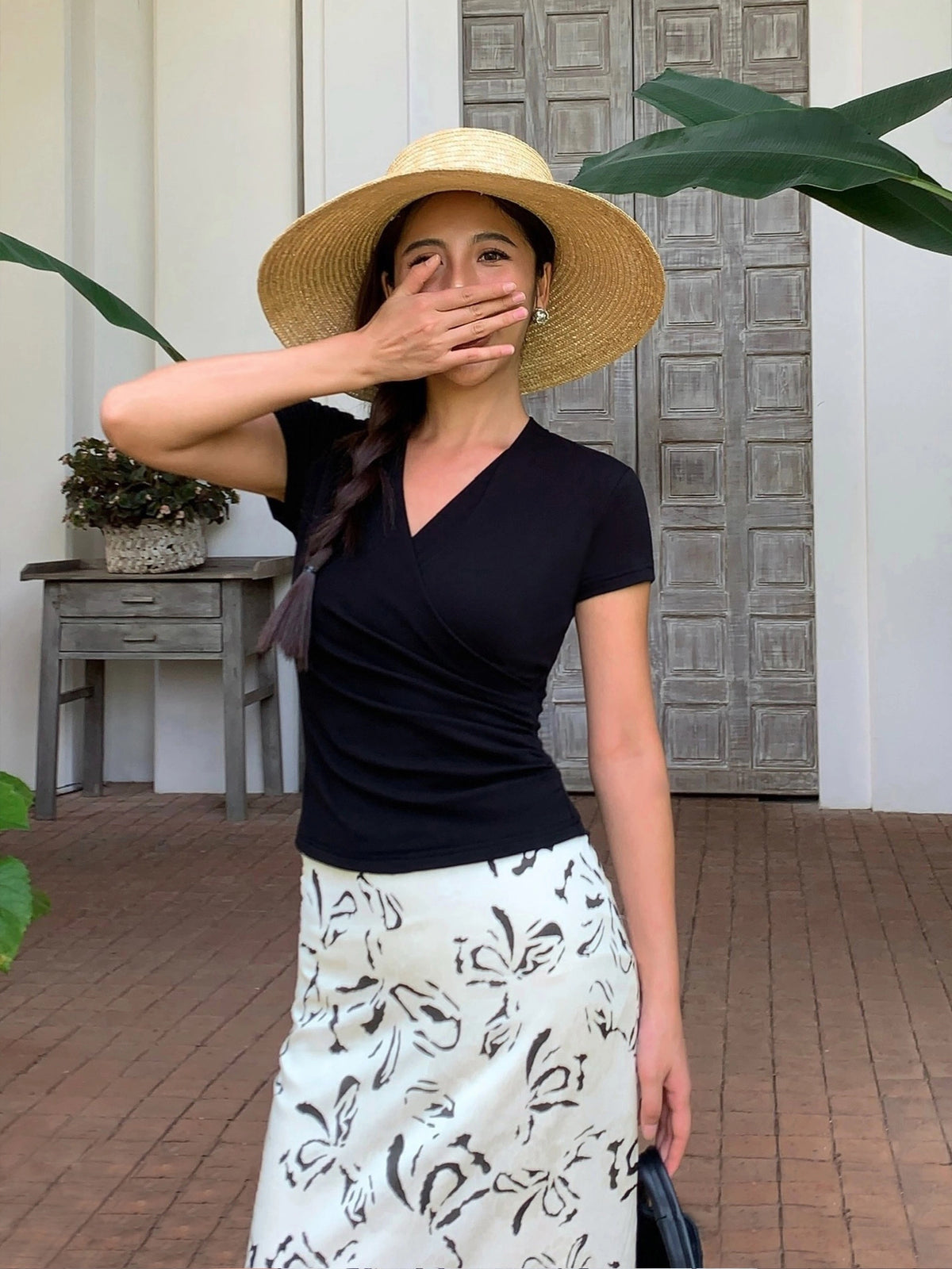 - Knit fabric: 46.5% viscose, 46.5% cotton, 7% spandex