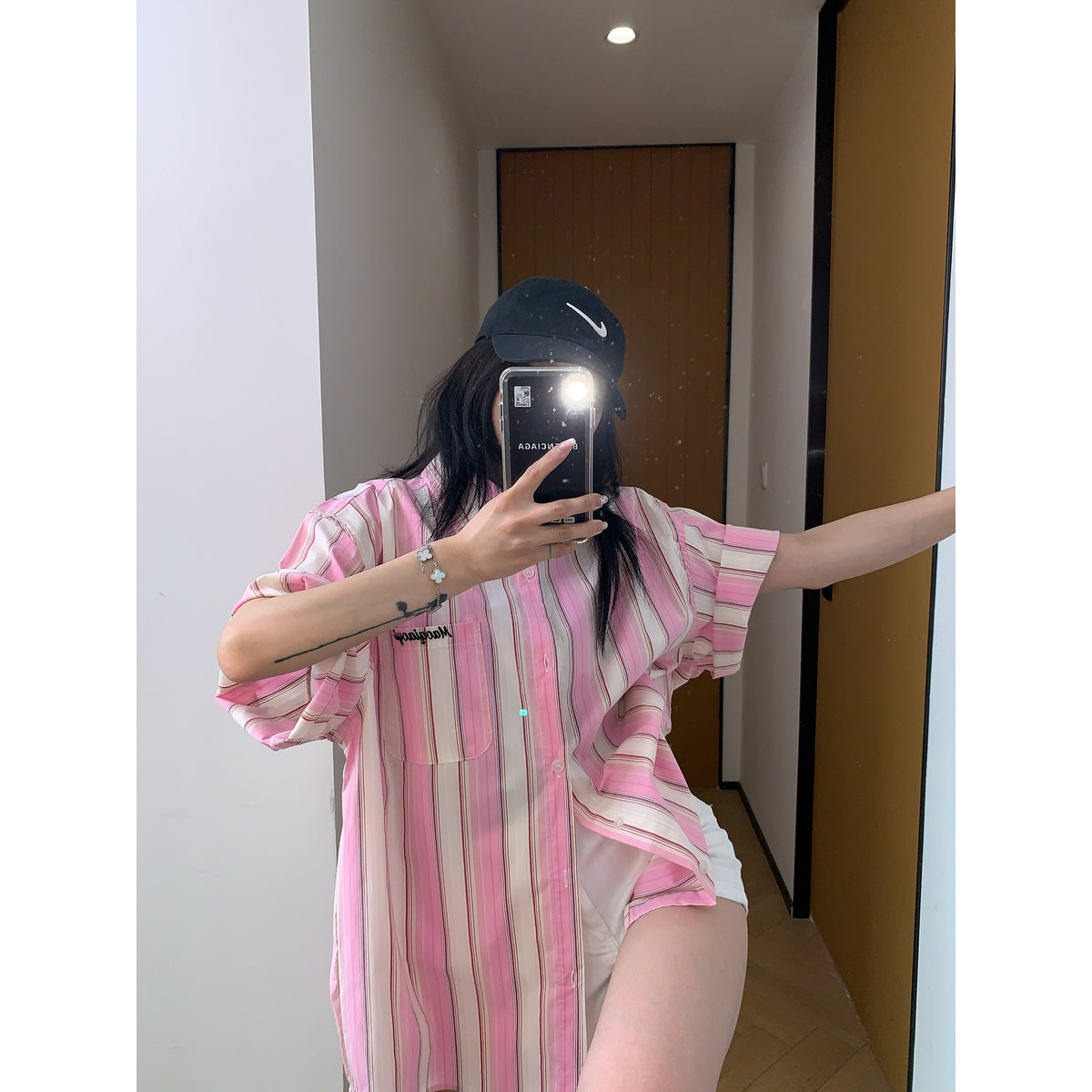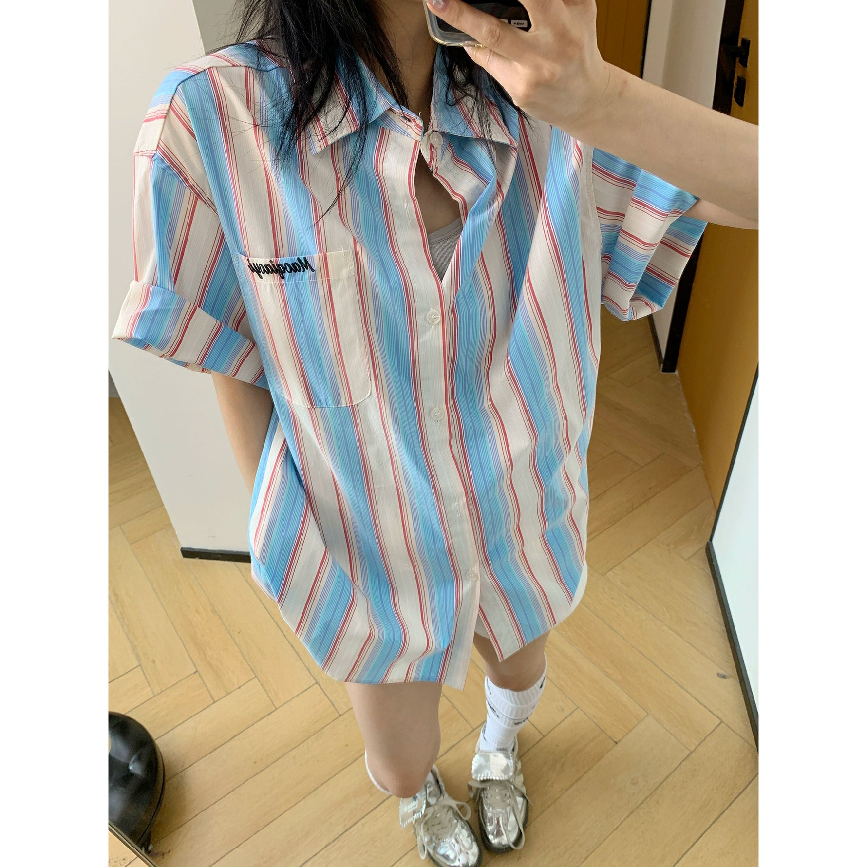 Vertical Striped Short Sleeve Relaxed Shirt