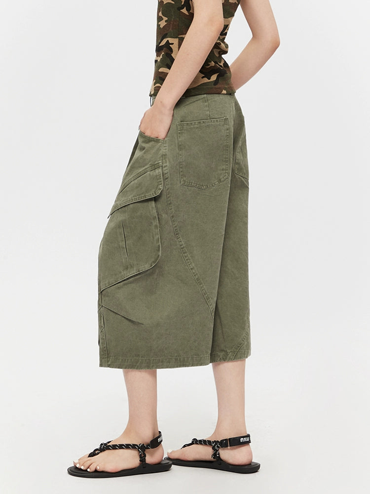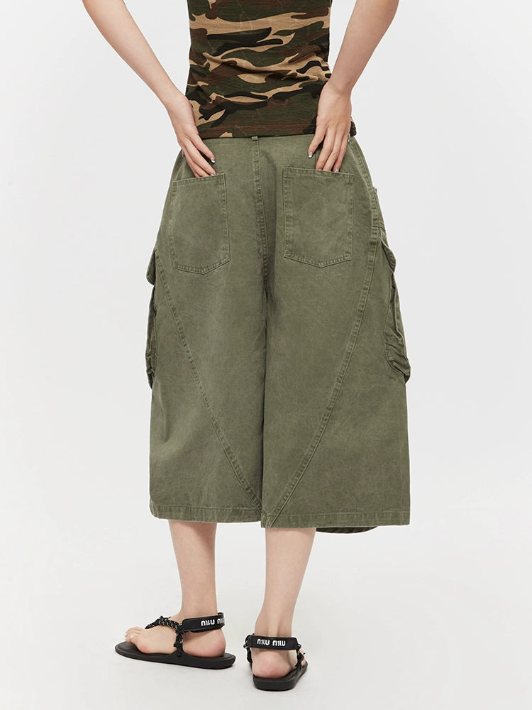 Wide-Leg Cropped Workwear Cargo Pants