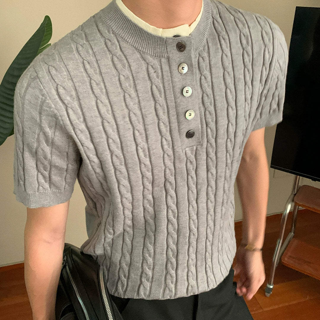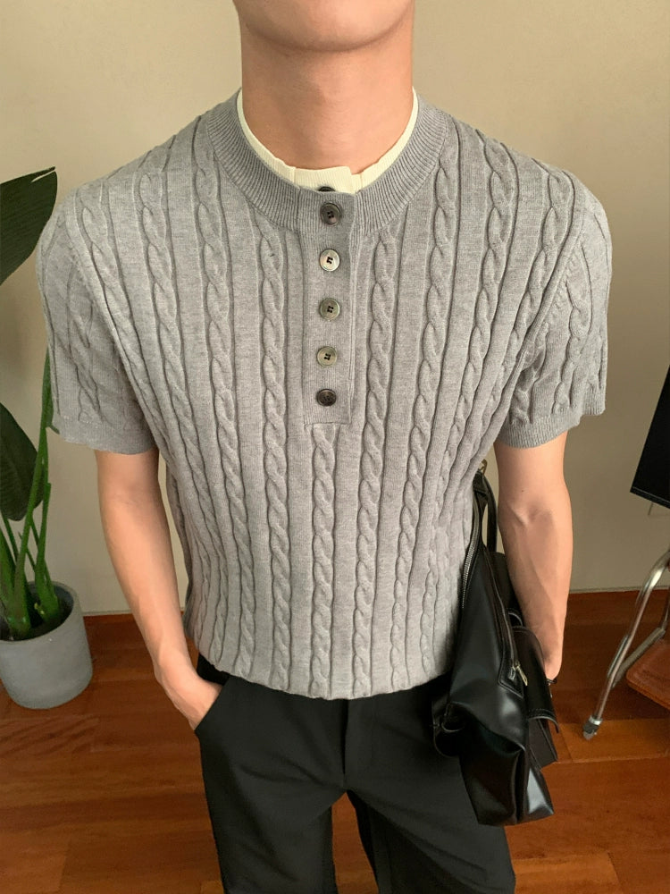 Cable Knit Short Sleeve Button Pullover