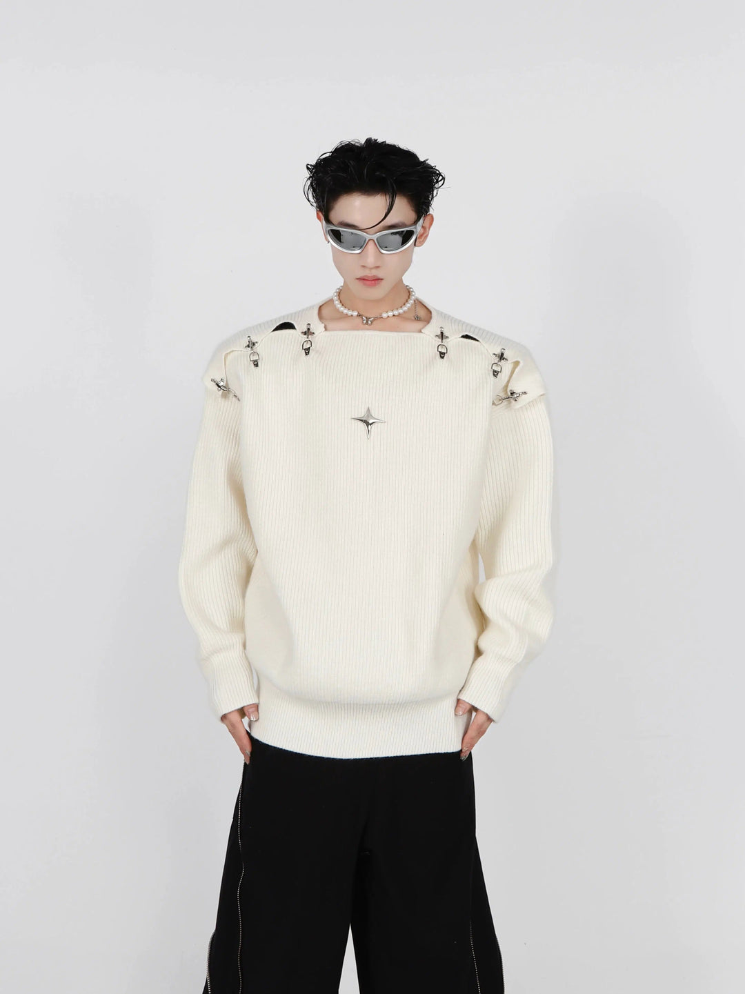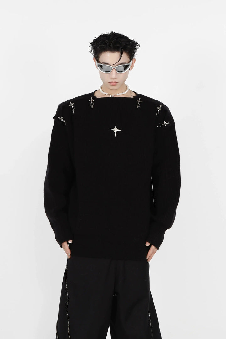 Buckle Hollow Knitted Sweater