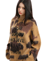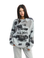 Fuzzy Letter Embroidered Sweater