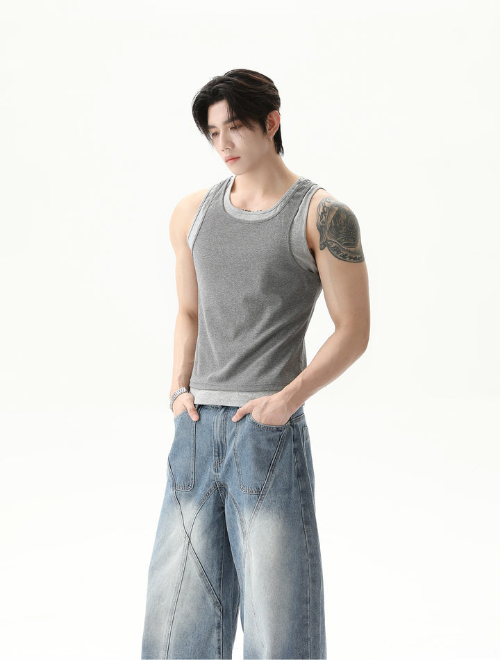 Sleeveless Layered Sports Tank Top
